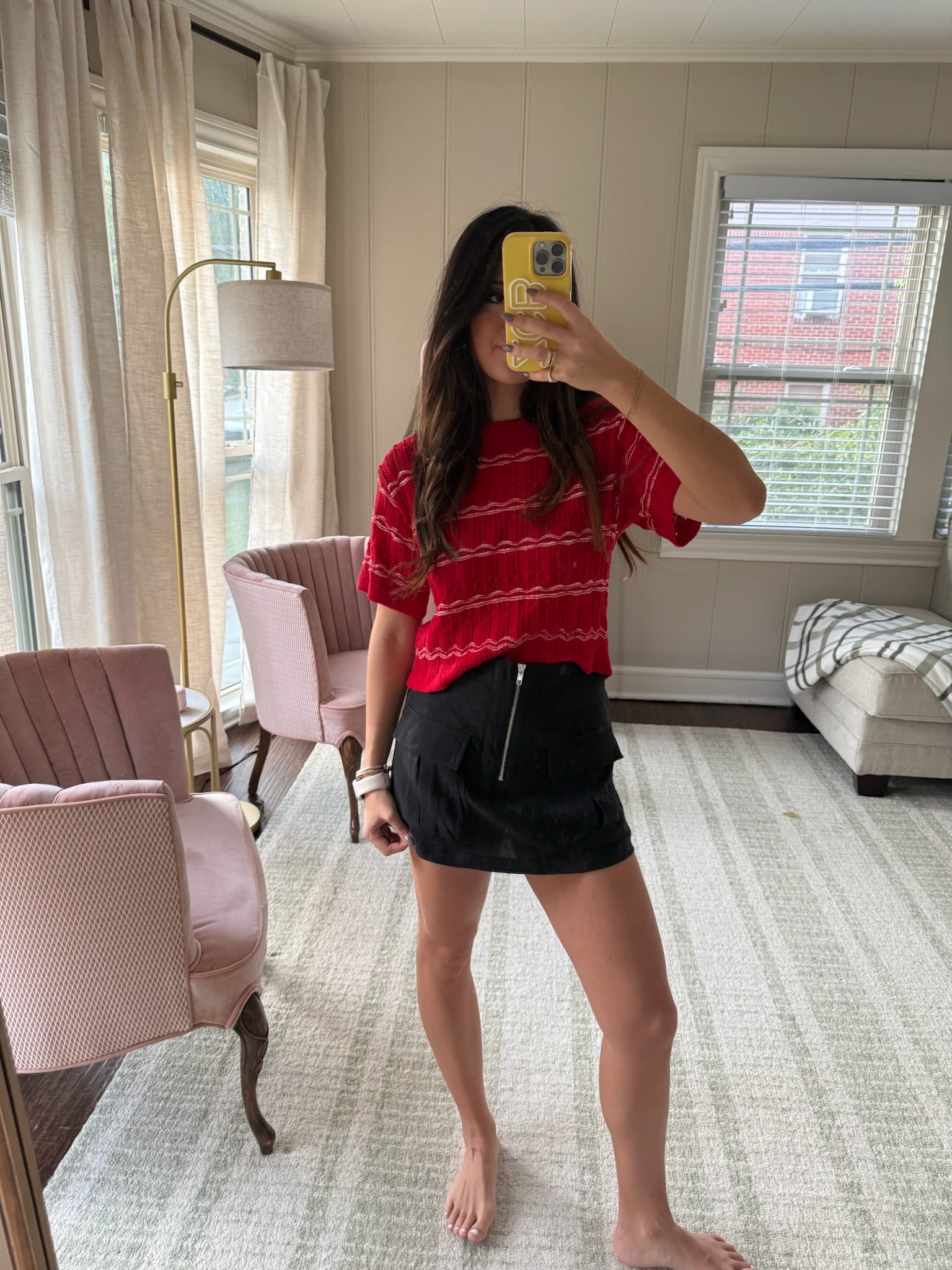 RED KNIT SHORT SLEEVE TOP- SMALL
