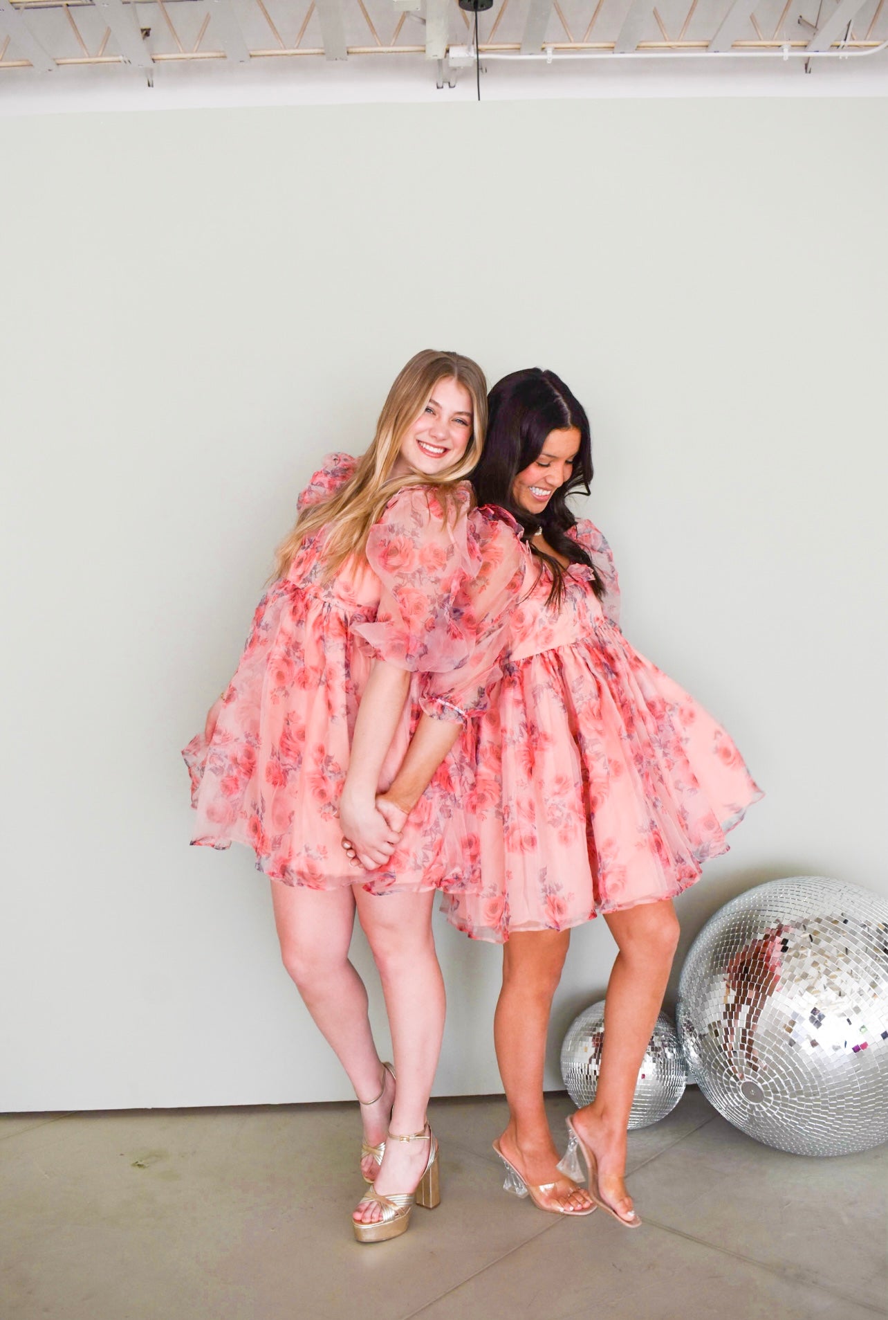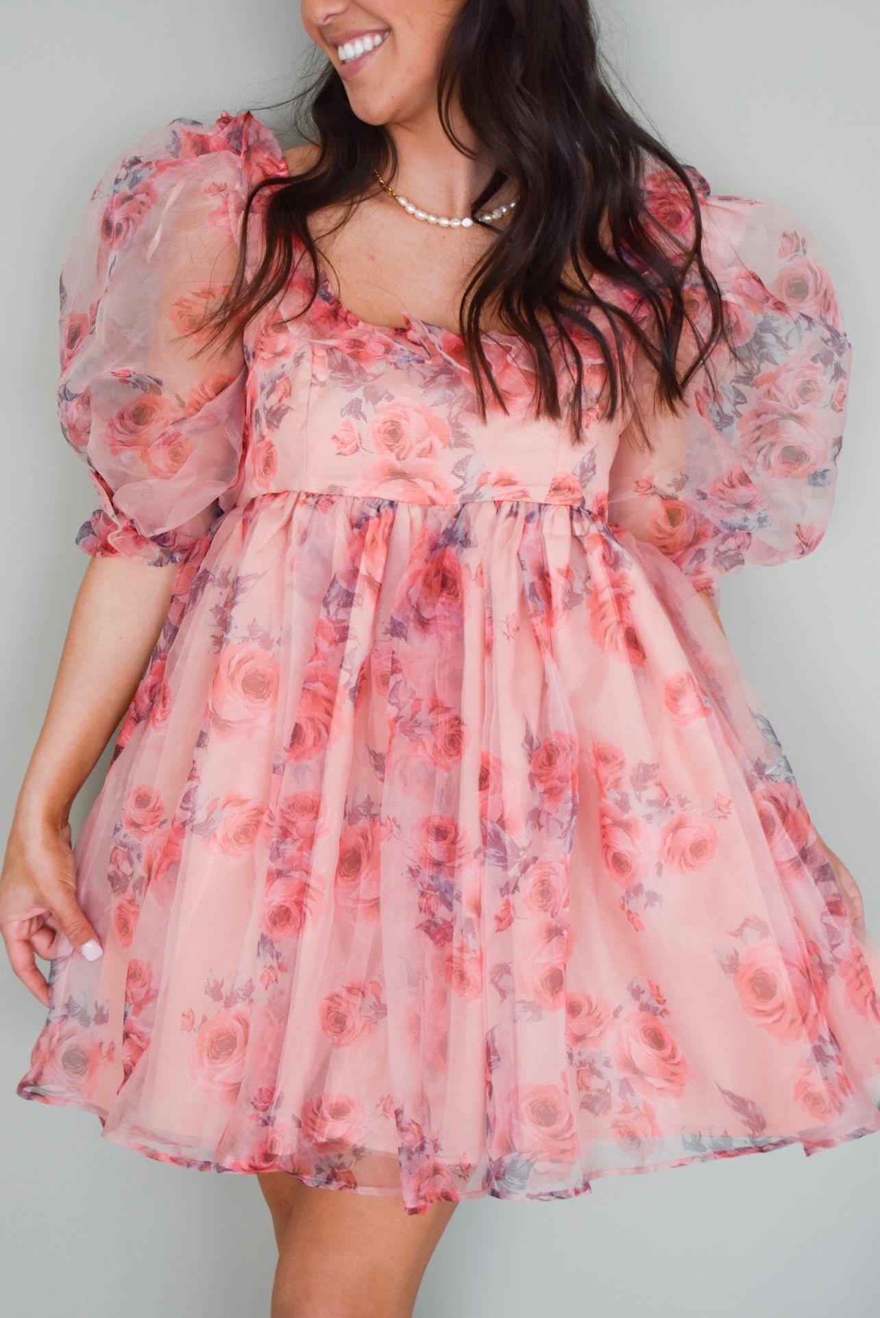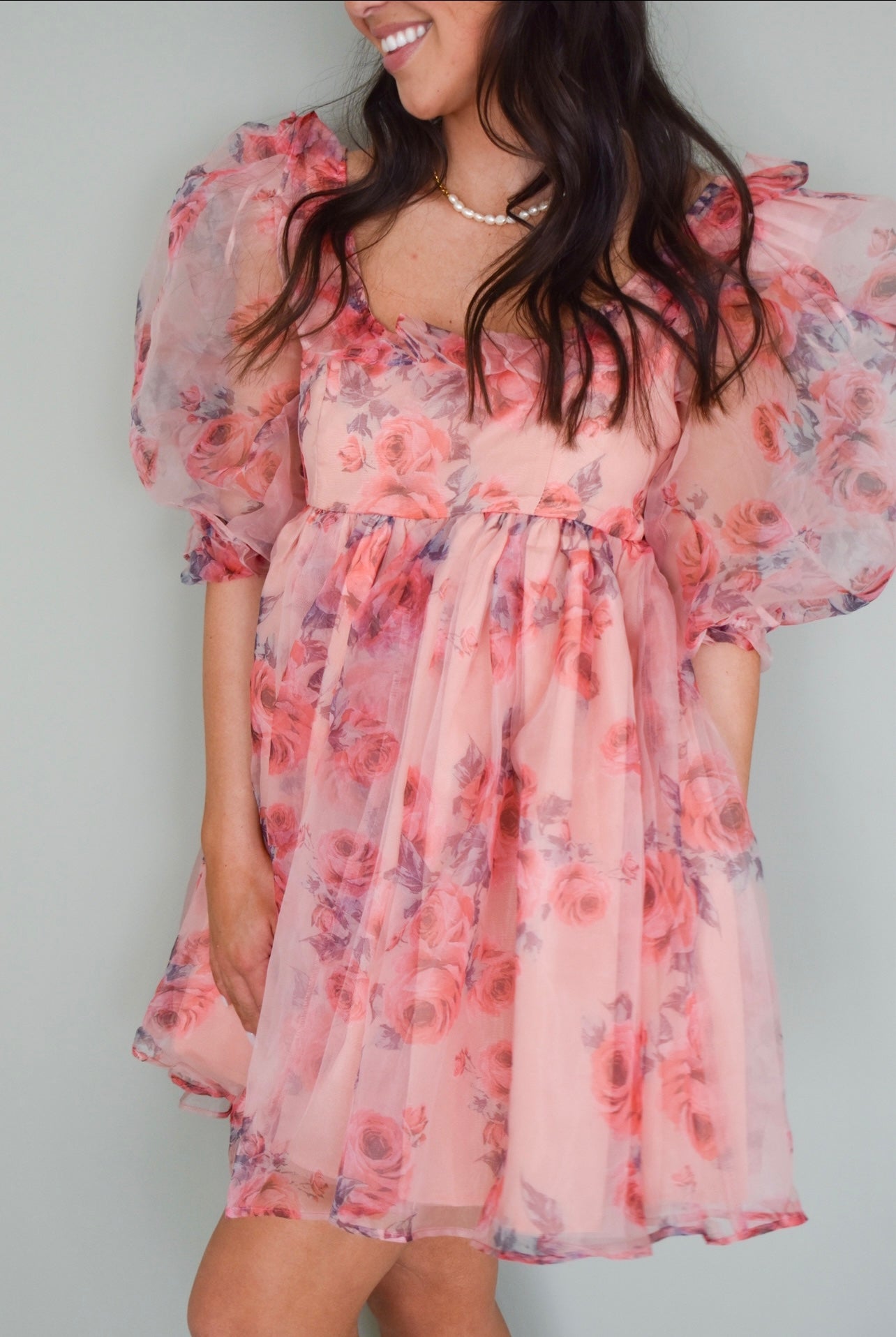 BLUSH MINI DRESS FLORAL DETAIL - SMALL