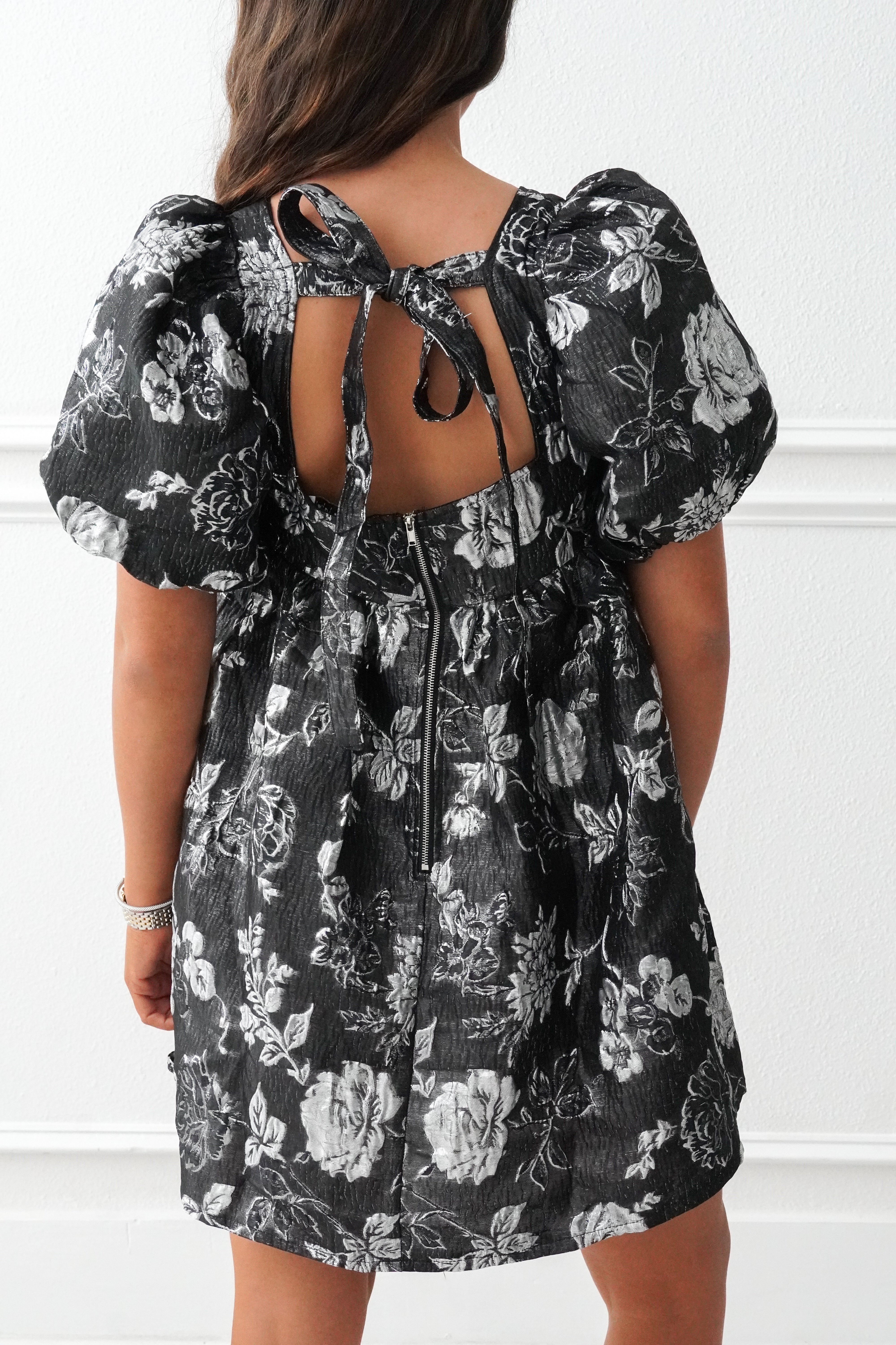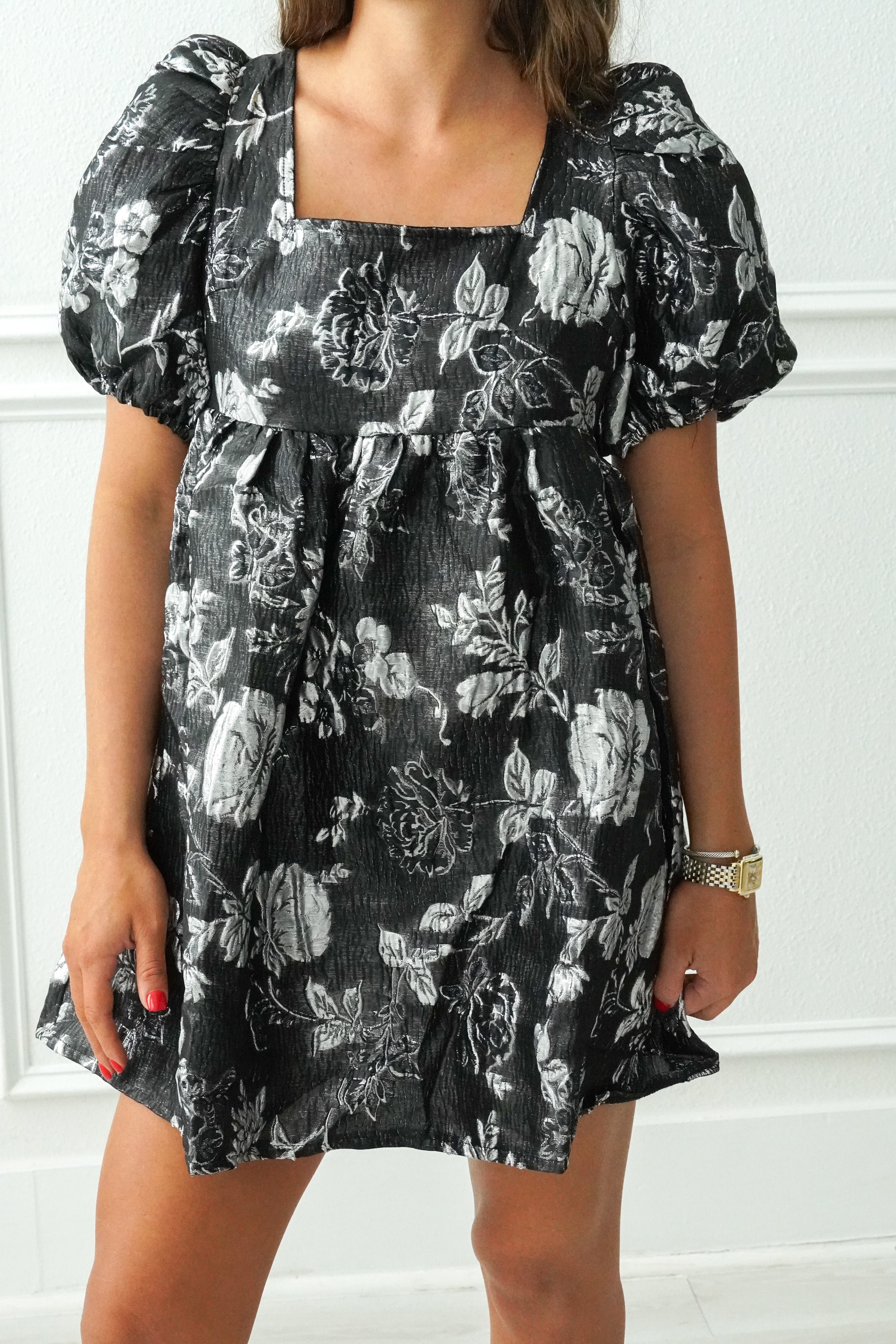 BLACK FLORAL OVERLAY MINI DRESS- SMALL