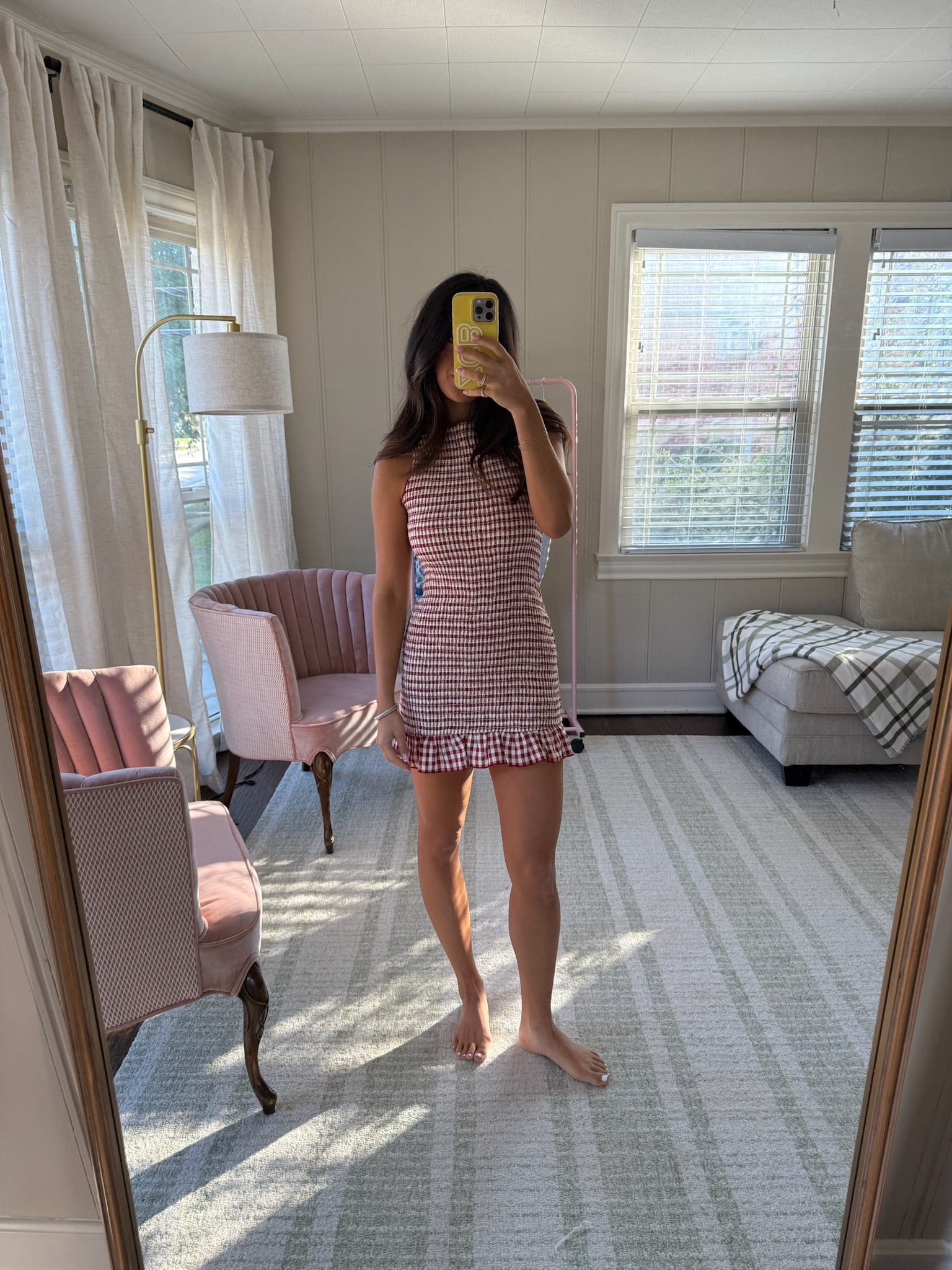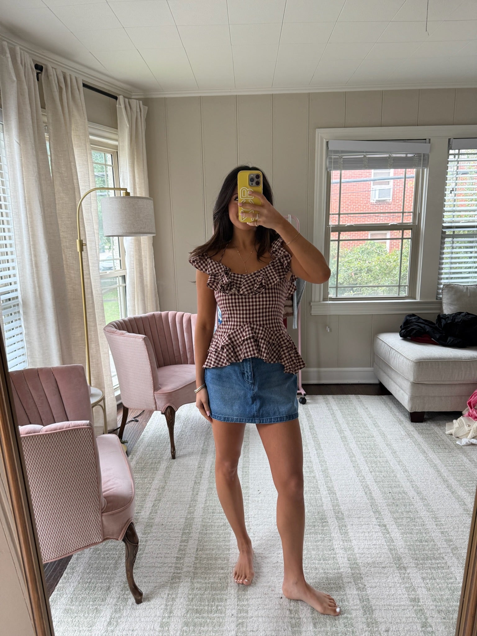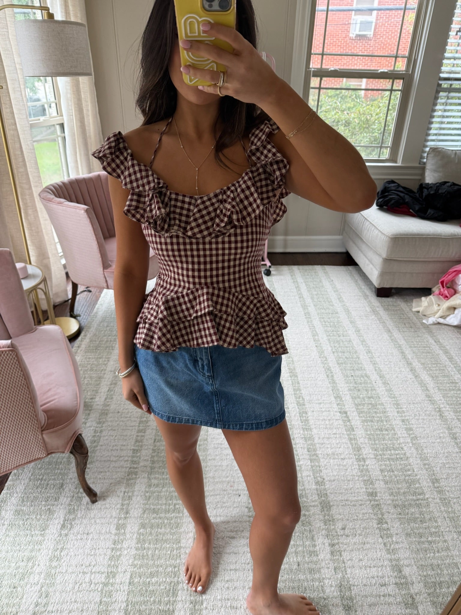RUFFLED MAROON GINGHAM TOP- SMALL