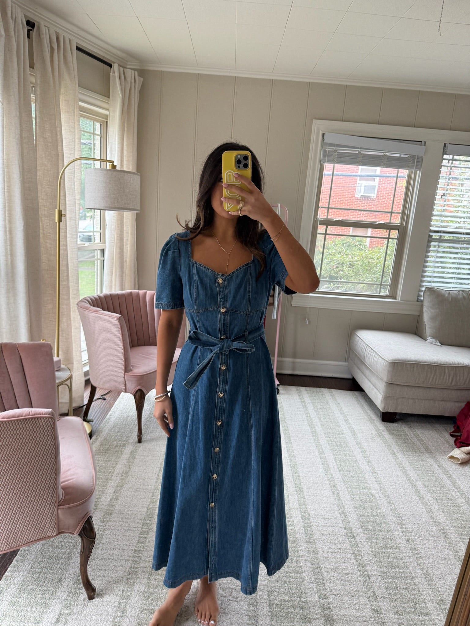 SHORT SLEEVE DENIM MAXI DRESS- SMALL