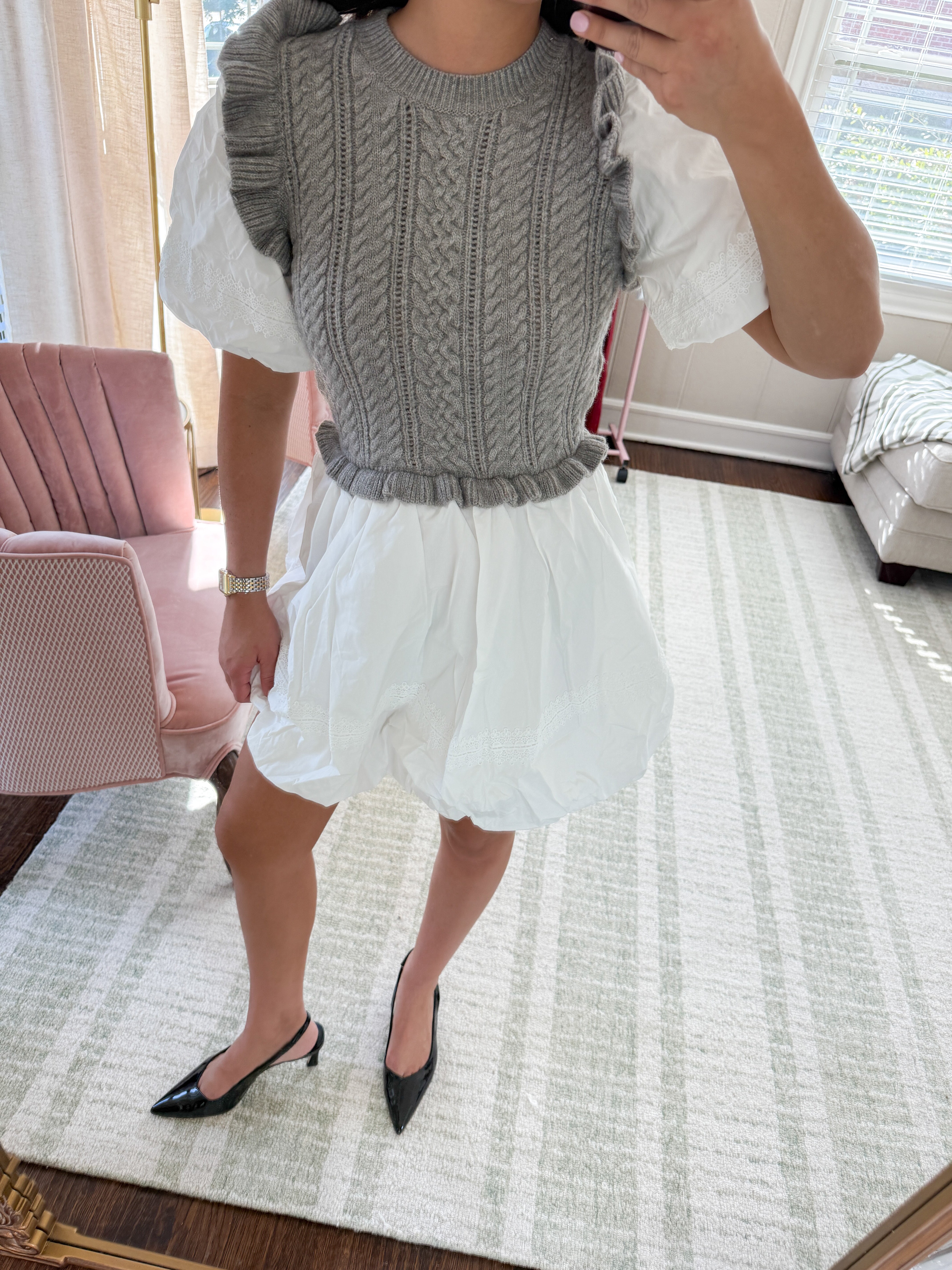 GRAY SWEATER VEST BUBBLE MINI DRESS- SMALL