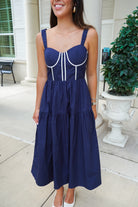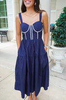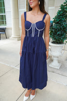 Featuring a corset bodice and scrunched elastic straps, this midi dress is darling and so versatile! We love it styled up for your next party or event, or dress it down with sneakers!