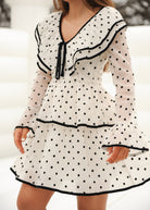 - Featuring a tiered skirt, a peter pan collar, and flared sleeves at the hem, this mini dress is so unique and feminine!! Perfect for your all the Spring parties!