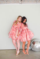 - Full balloon sleeves, a full skirt, ruffling detail, and this super unique color will have everyone asking where you got this adorable dress!