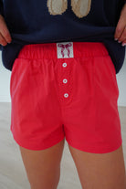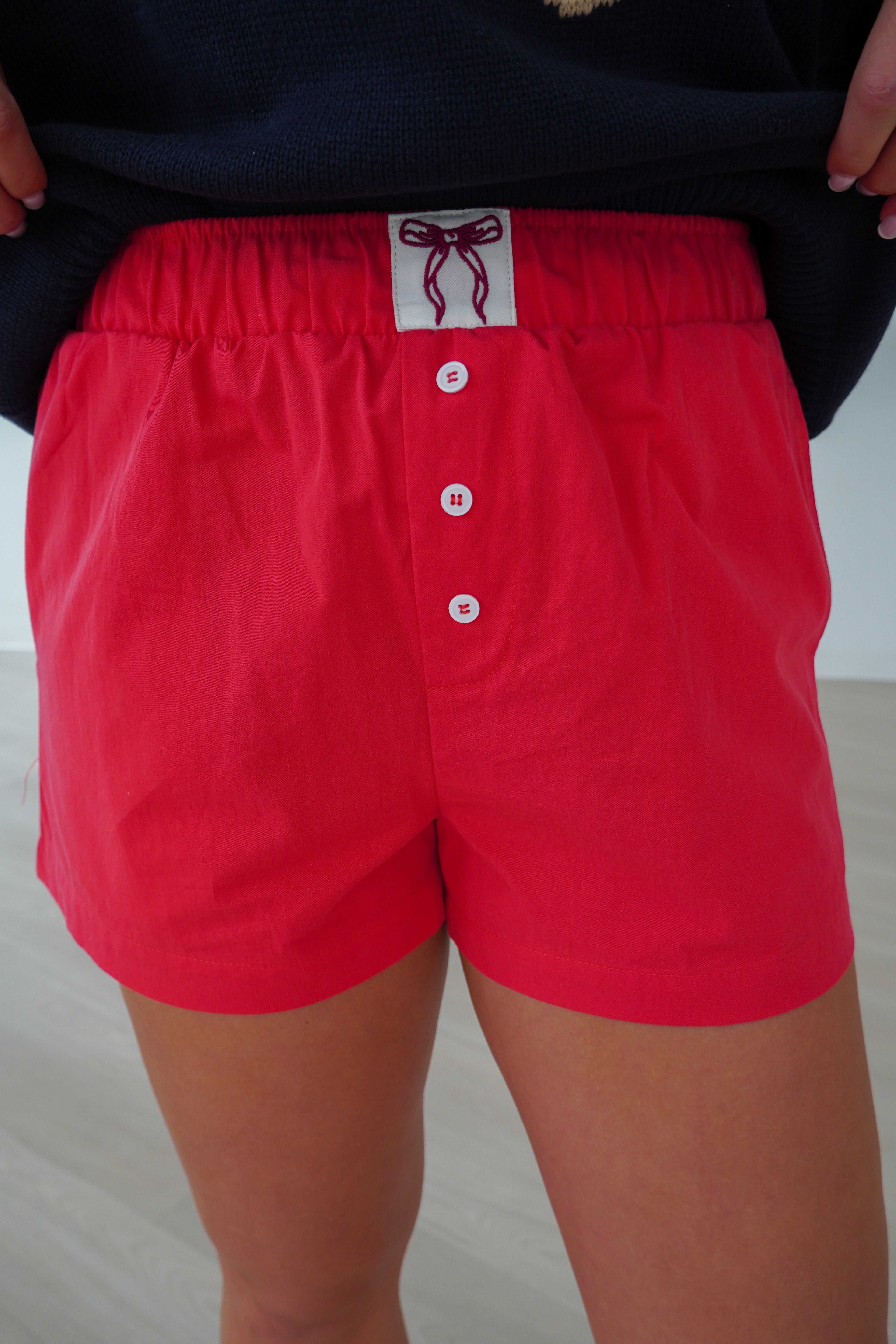 Add a touch of fun to your loungewear with these red boxer shorts, featuring a cute bow detail on the waistband. Crafted for ultimate comfort, these soft, breathable shorts offer a relaxed fit with a playful twist.
