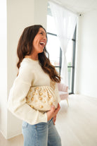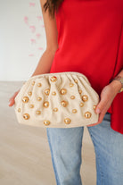 This stunning clutch features a modern, gold studded design- whether you're headed to a fancy event or a casual outing with friends, this clutch offers a blend of sophistication and edge that's sure to turn heads.