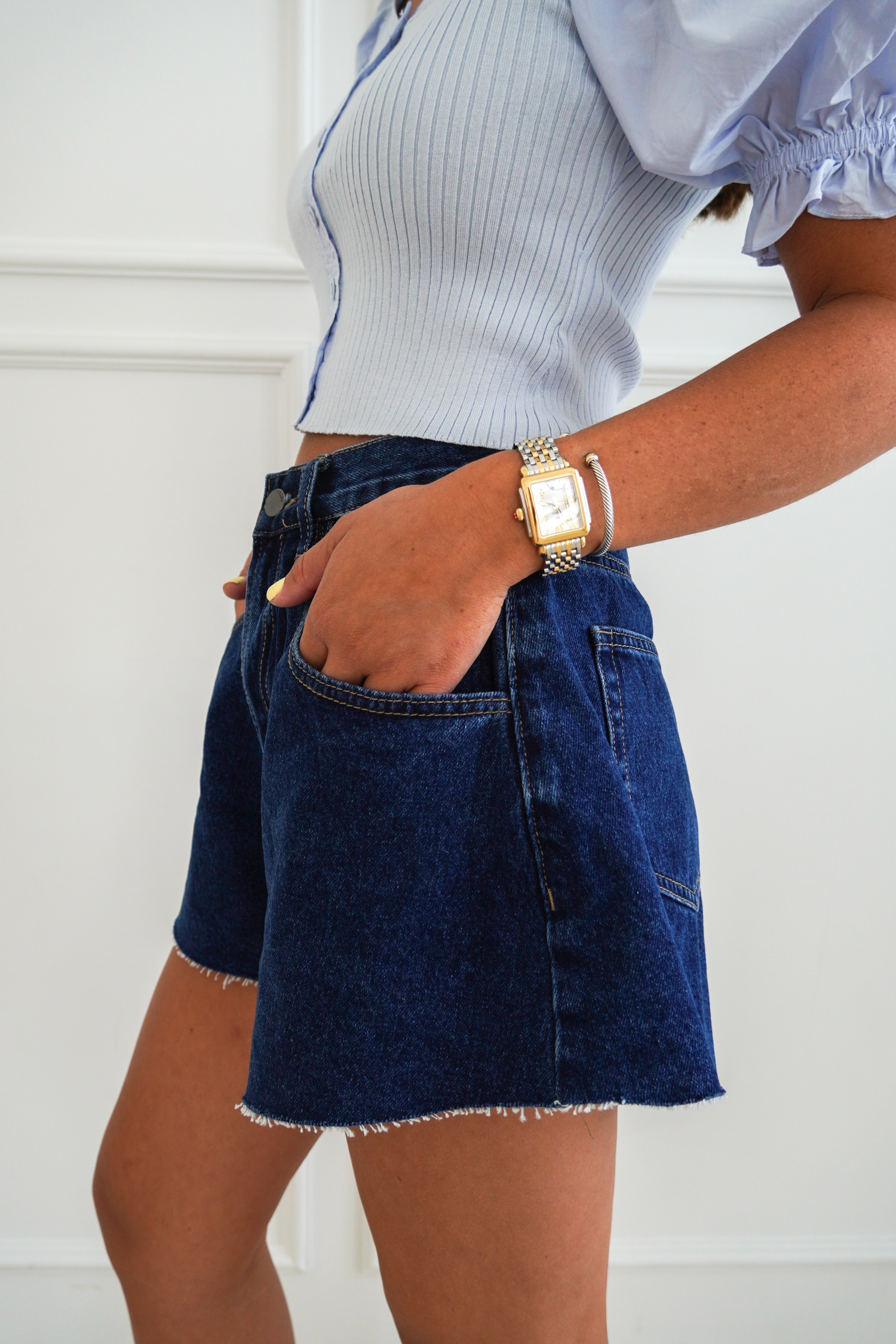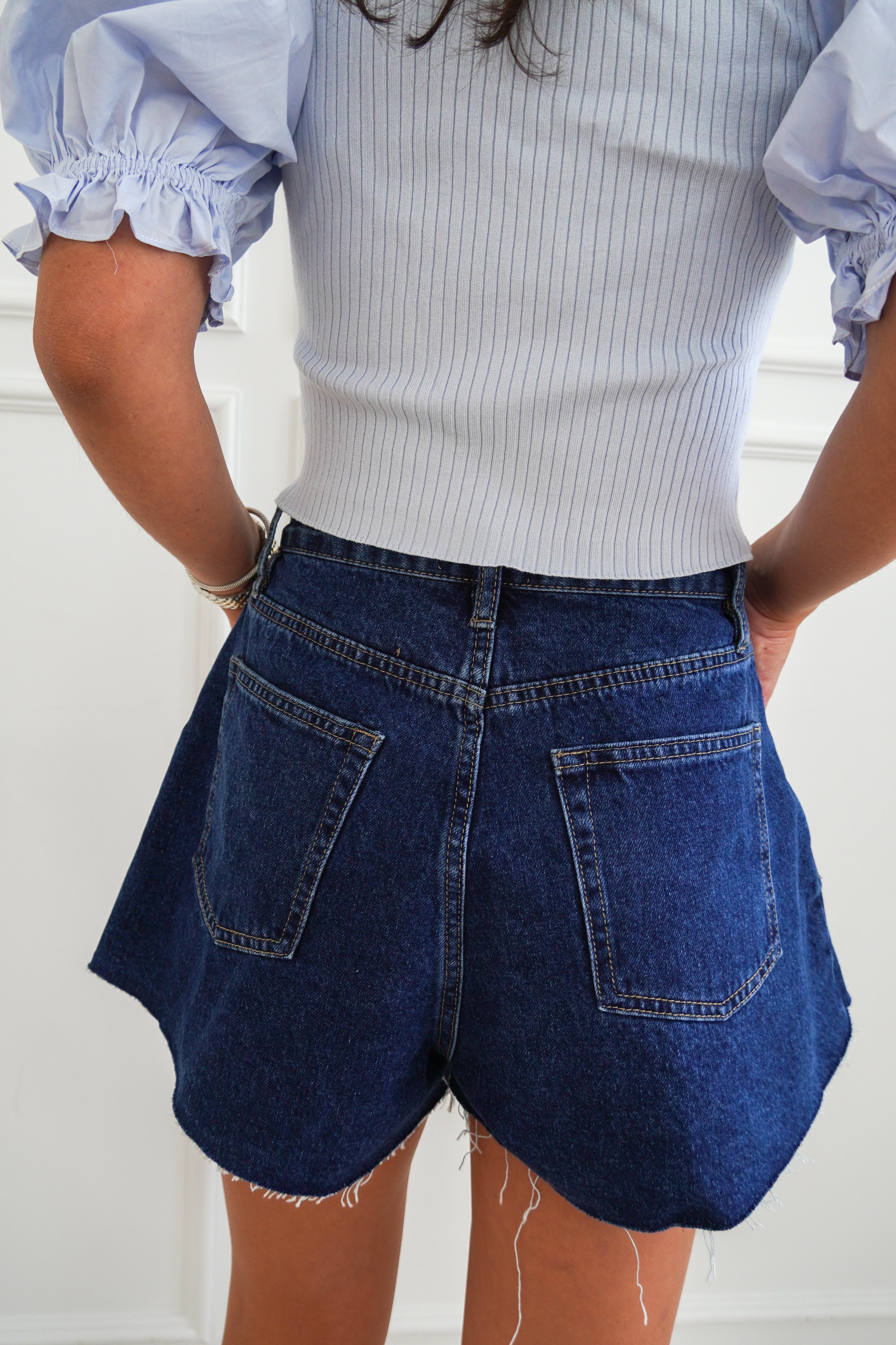 THE FLARED DENIM SHORTS- LIGHT WASH
