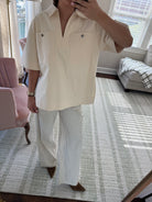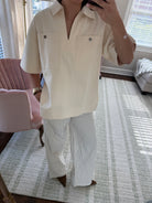 STRUCTURED IVORY SHORT SLEEVE TOP- SMALL