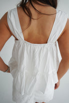 This dreamy white top is the definition of soft, feminine charm. Designed with a relaxed, flowy silhouette, it features a flattering square neckline and statement shoulder ties finished in oversized flower details for a romantic and beachy touch.