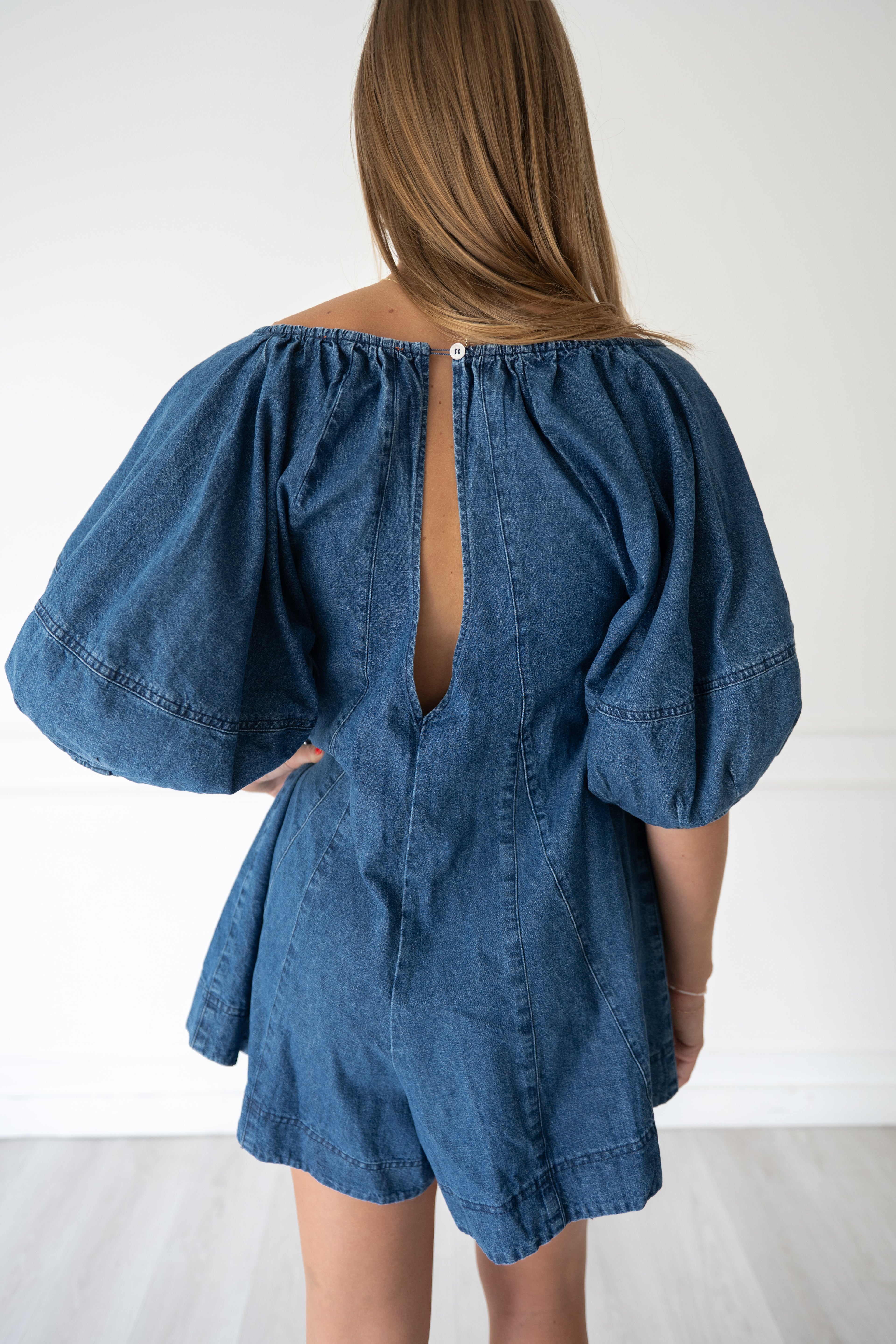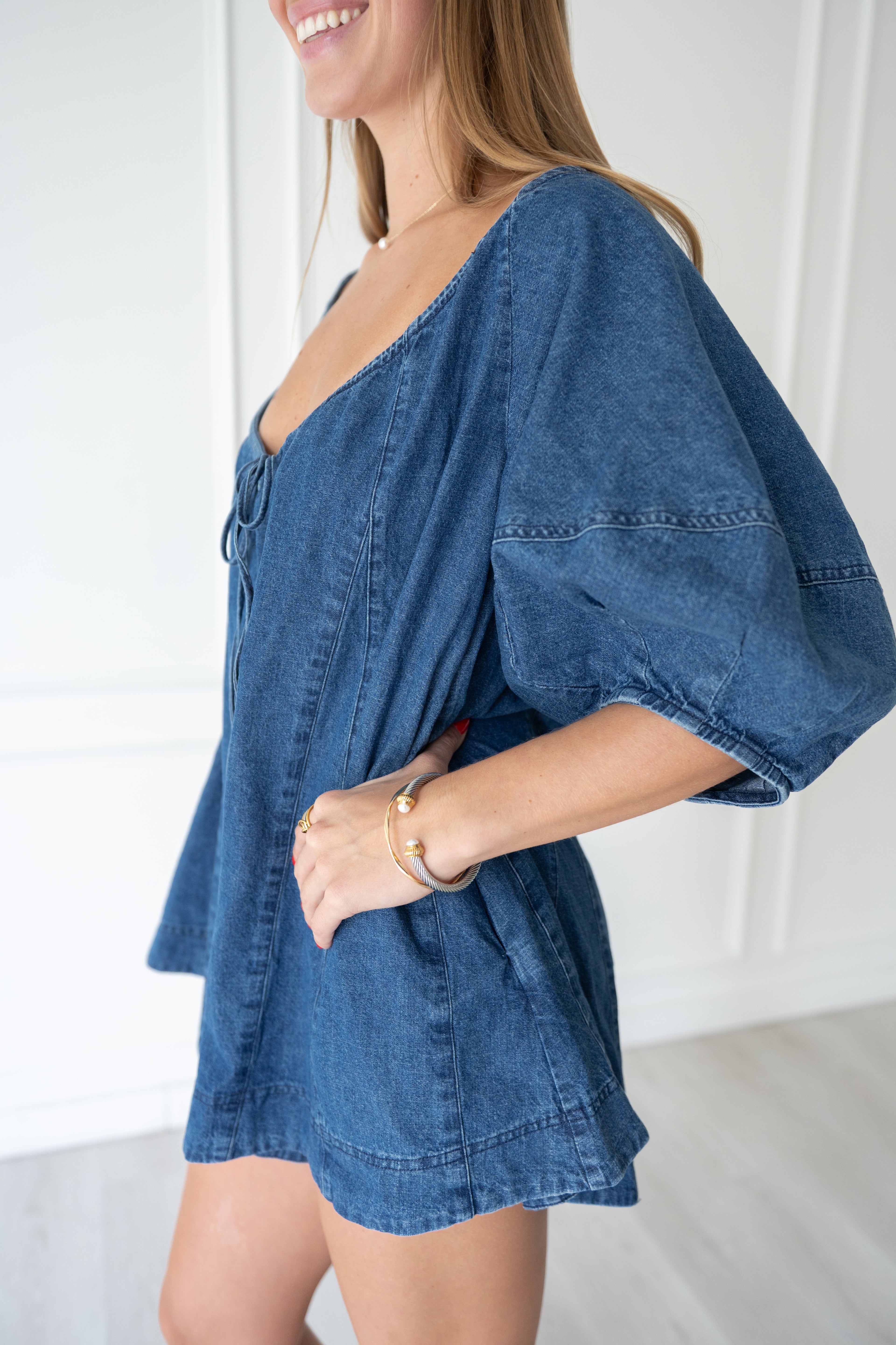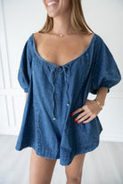 Perfect romper for every gameday or a denim occasion! This wide neck denim romper is breezy and begging to be accessorized with your school colors.