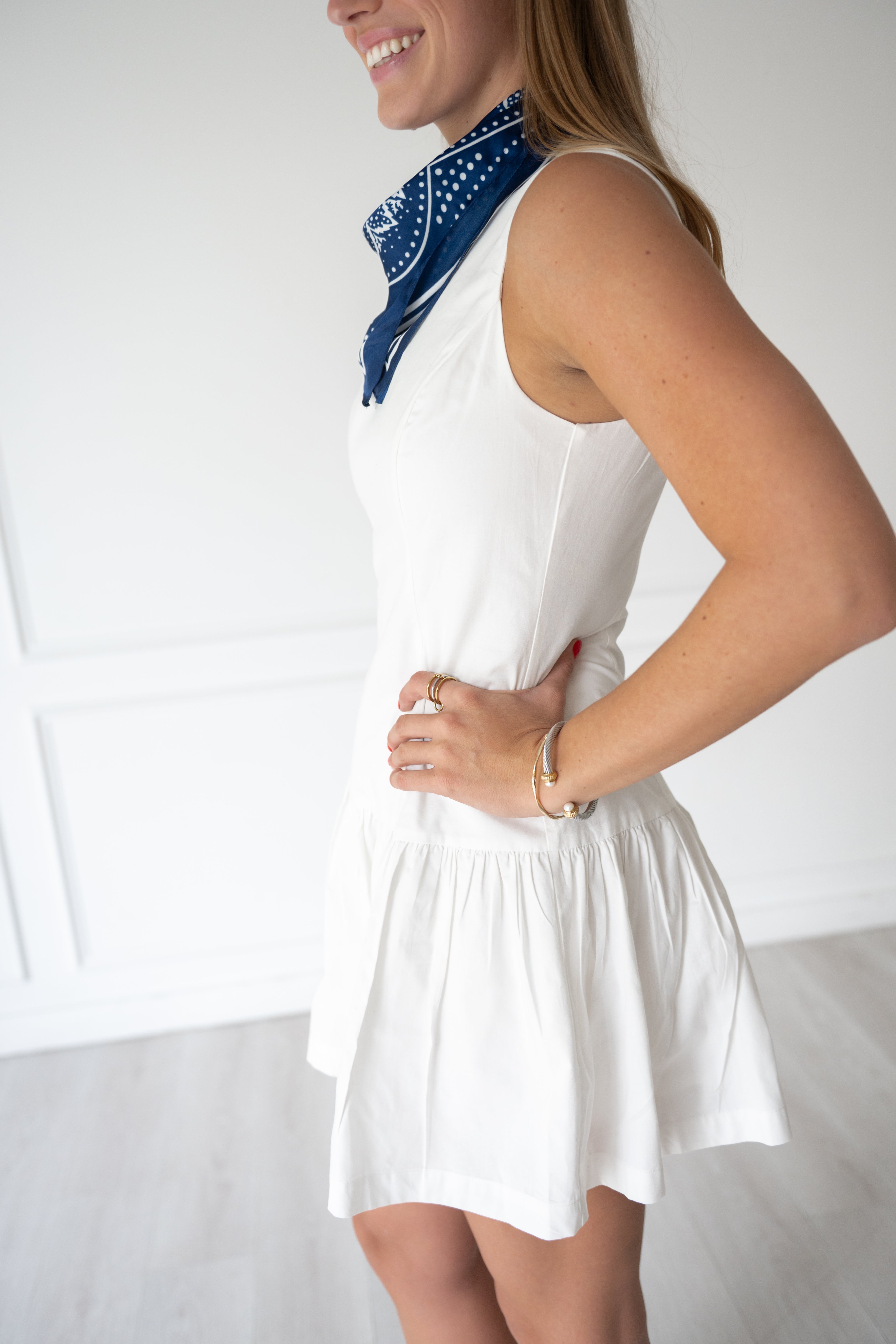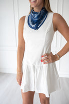 This drop waist mini dress is sure to make you the star of gameday! Easily paired with your favorite boots & accessories, this high neck silhouette is so flattering.