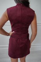 We are OBSESSED with the vintage vibes of this maroon suede mini dress! Featuring a flattering mock neck & low waisted belt– this dress is perfect for gameday or festive Fall outing paired with boots!