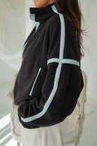 This modern half-zip jacket offers a stand-up collar and large patch pockets for functional style. Its relaxed fit makes it perfect for layering over tees. We love the baby blue detailing and cozy fleece fabric.