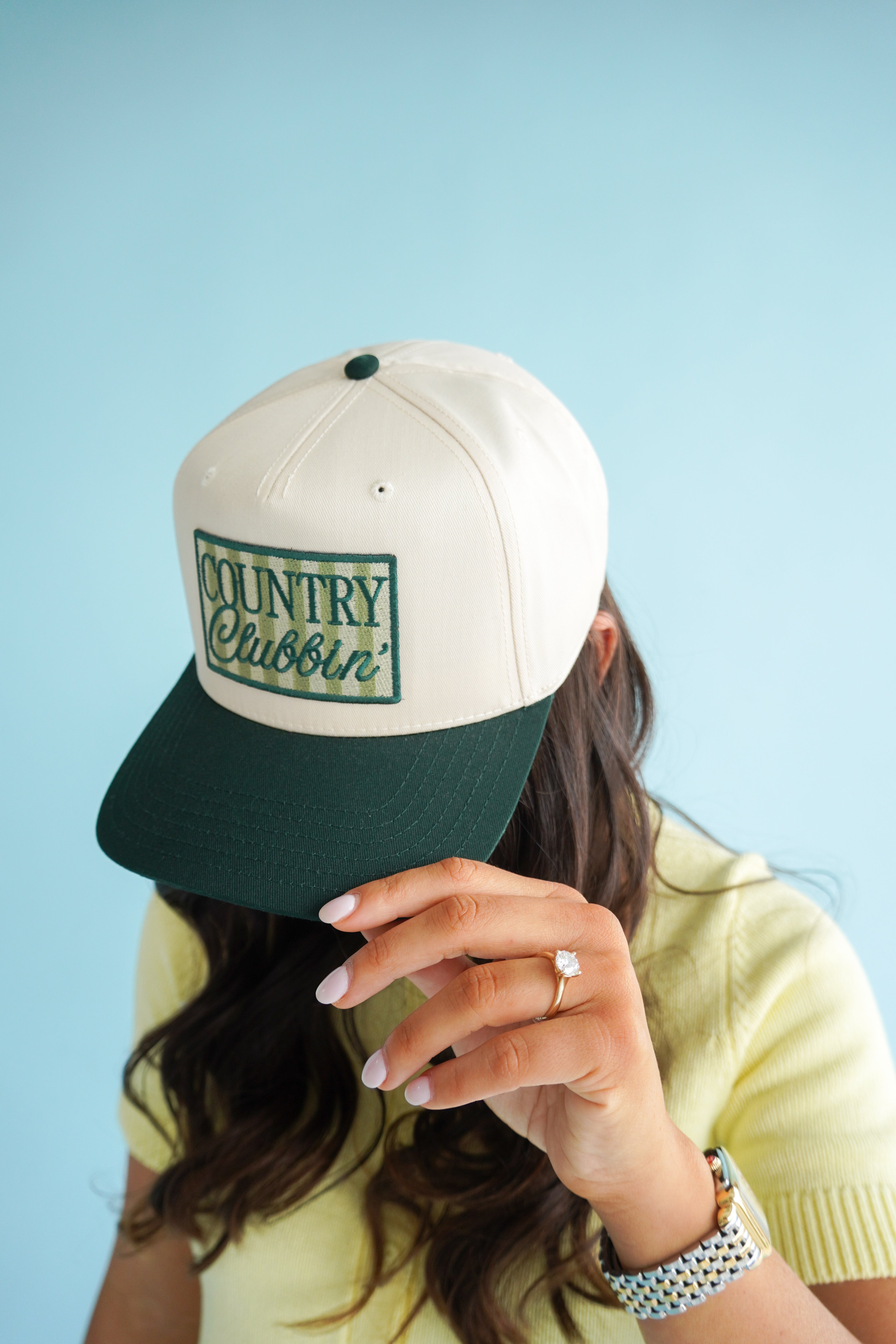 Elevate your casual style with this classic country club hat, featuring a distinctive embroidered patch and a timeless design. The green colorway with contrasting green stripes creates a preppy, sophisticated look perfect for golf outings, weekend getaways, or everyday wear. Crafted for comfort and durability, this hat pairs effortlessly with any wardrobe.
