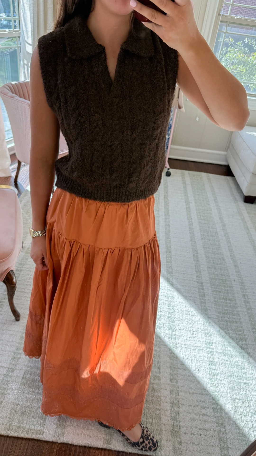 Perfect for your Fall transition wardrobe– this brown sweater vest is so cute & comfy! We love the collar & knit detailing. Pair with your favorite jeans or mini skirt to complete the look.