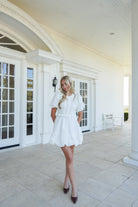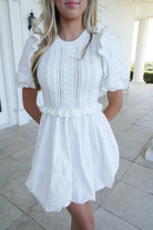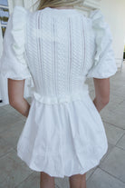 Featuring a knitted sweater on top with puff sleeves and a bubble skirt, this dress is so sweet and feminine. We love this styled with booties or heels, depending on the occasion!