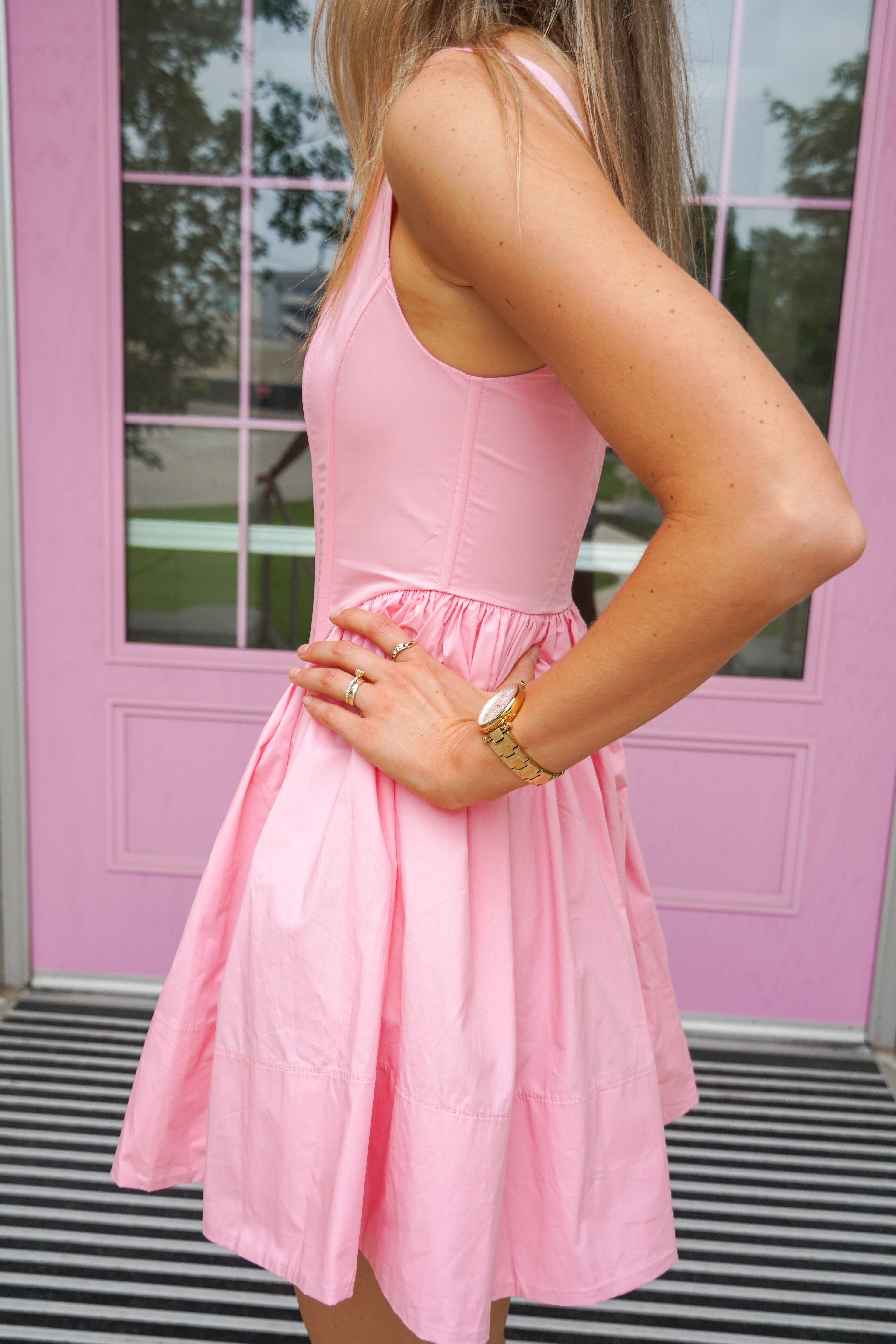 Featuring a corset top, square neckline, and full skirt, this dress is so charming with a ballet-inspired fit-and-flare silhouette!