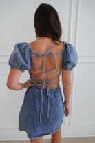 Featuring a scoop neck denim dress with puff sleeves and a lace up back- we are obsessed with the back of this dress!!!! This is a must have in the closet for all gamedays!!!
