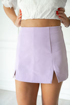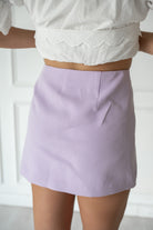 We love the clean, tailored look of this high-waisted lilac mini skirt! Featuring two front slits and built-in shorts for added movement and comfort, this piece is ready to be paired with just about anything.