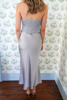 - This set is chic and classic! With a strapless bandana top and a maxi length skirt, we love pairing this together, but also pairing each piece separately for different looks!