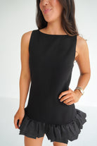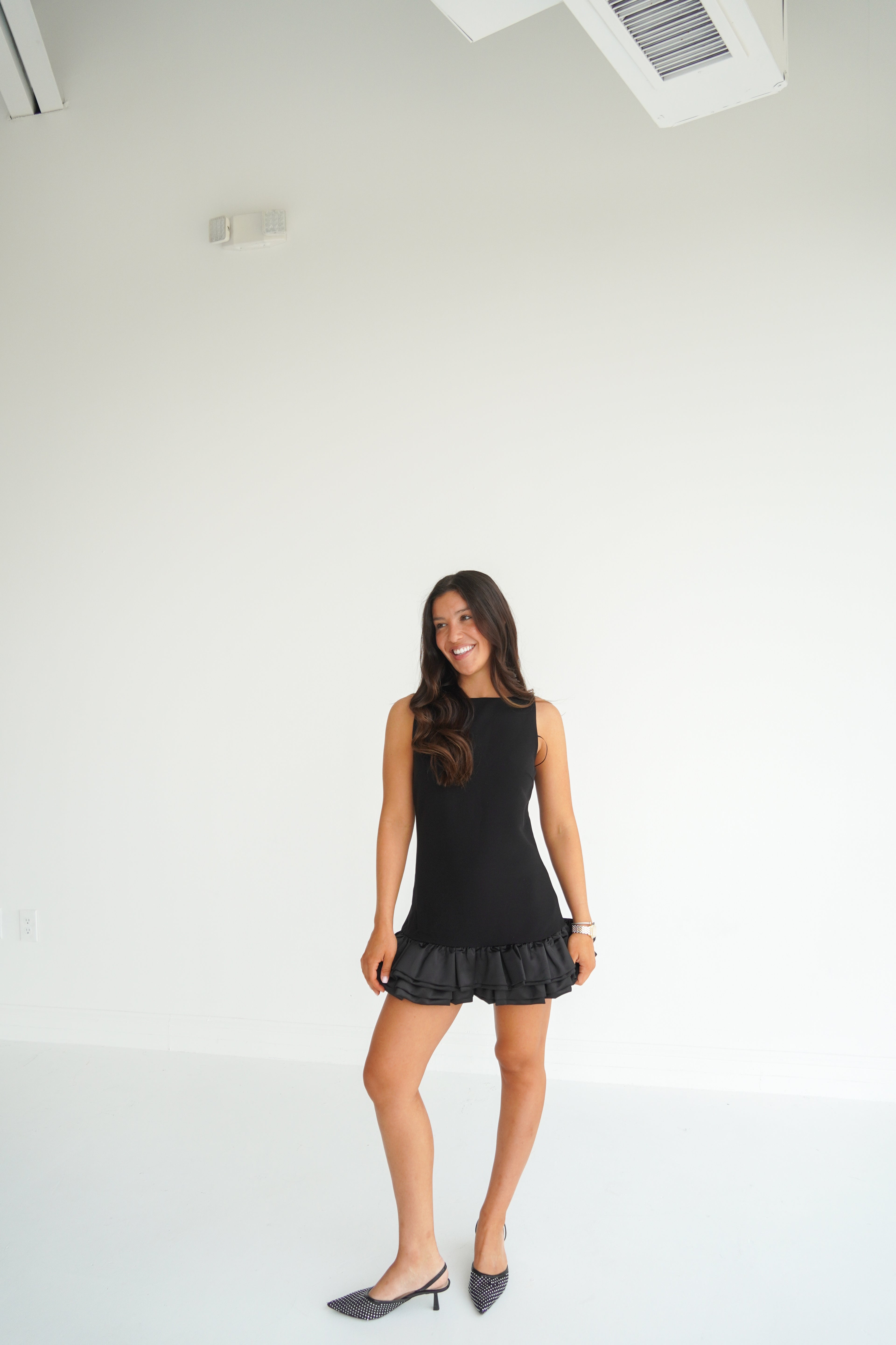 Featuring a scoop neckline, a ruffled satin hem and a simple and elegant fit-- this mini dress is so chic and the best part? IT HAS SHORTS UNDER!!