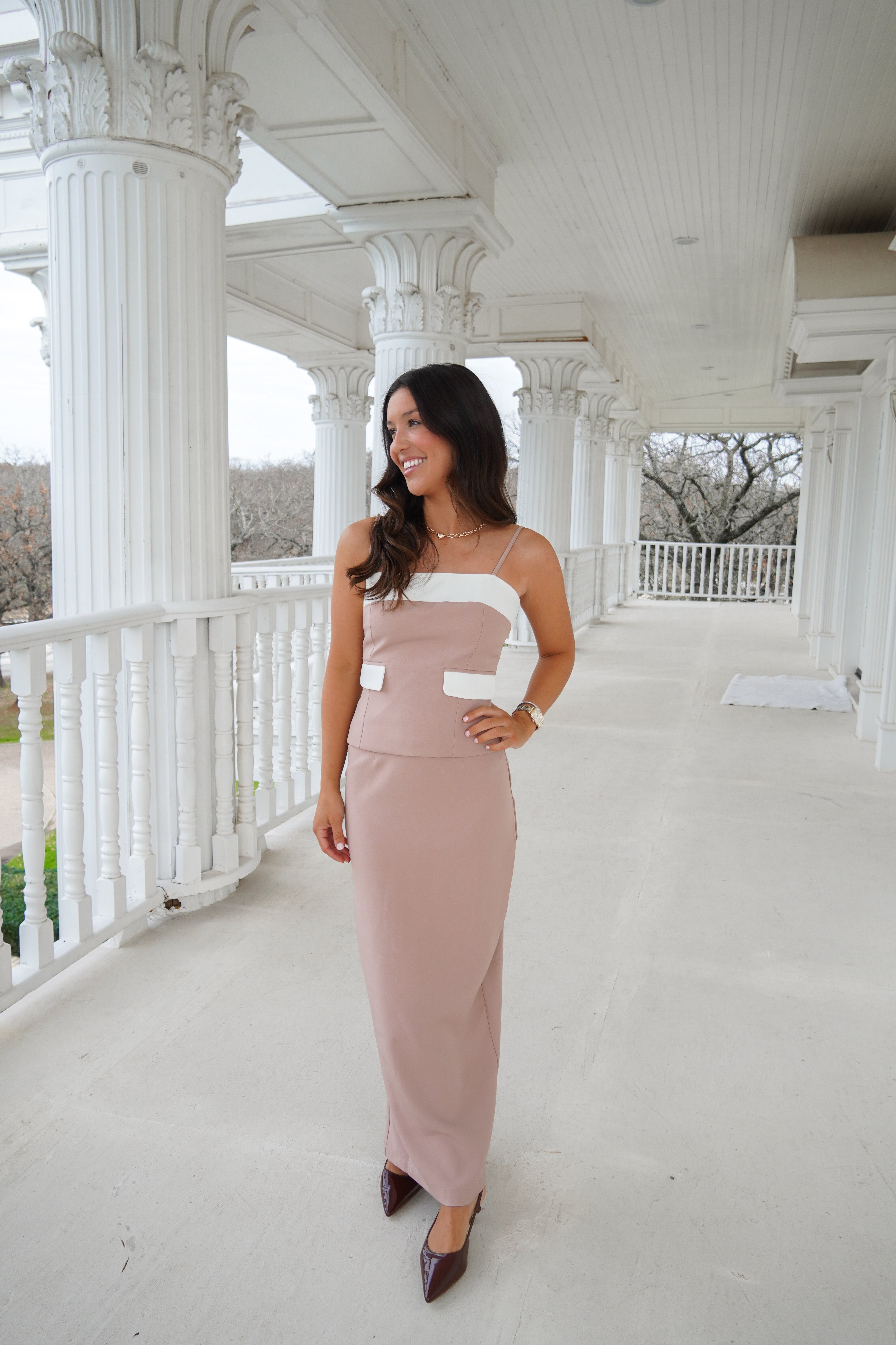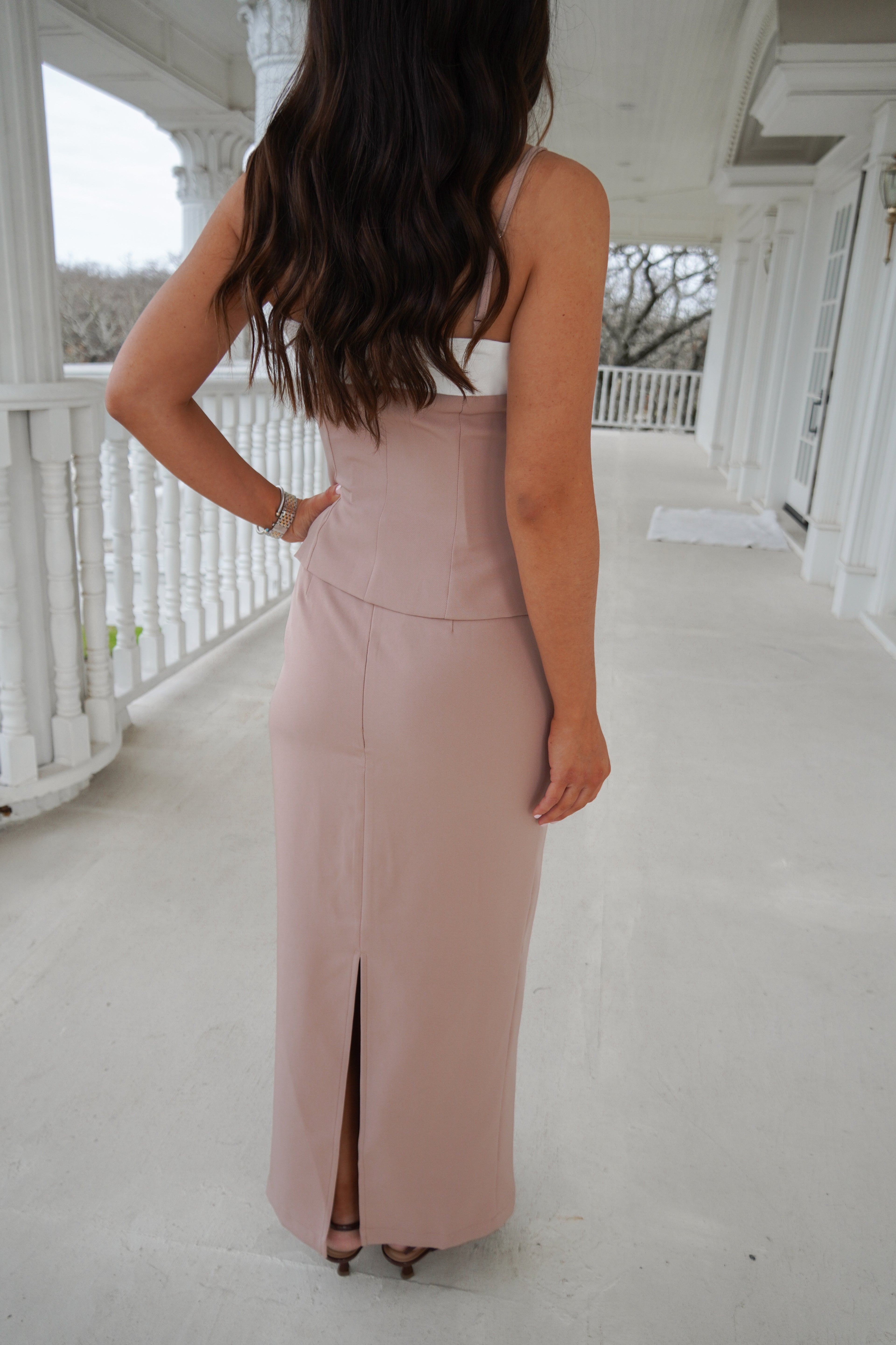 Featuring a pencil maxi skirt, a tank top with a slight flared hem that makes it extra flattering for the waist, this set is chic and boss!