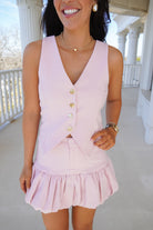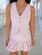 The perfect bubblegum pink set with a pink button up vest and matching bubble skirt. This set is preppy, flirty, and classy all in one!!