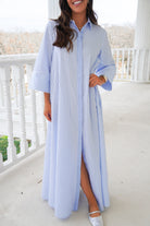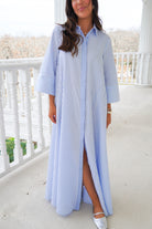 Chic and easy-- this dress is versatile and so easy to throw on and go! We are obsessed with the 3/4 length wide sleeves, the collared neckline and the flowy fit-- perfect for teachers, moms, an office fit, or an easy brunch fit! The options are endless!