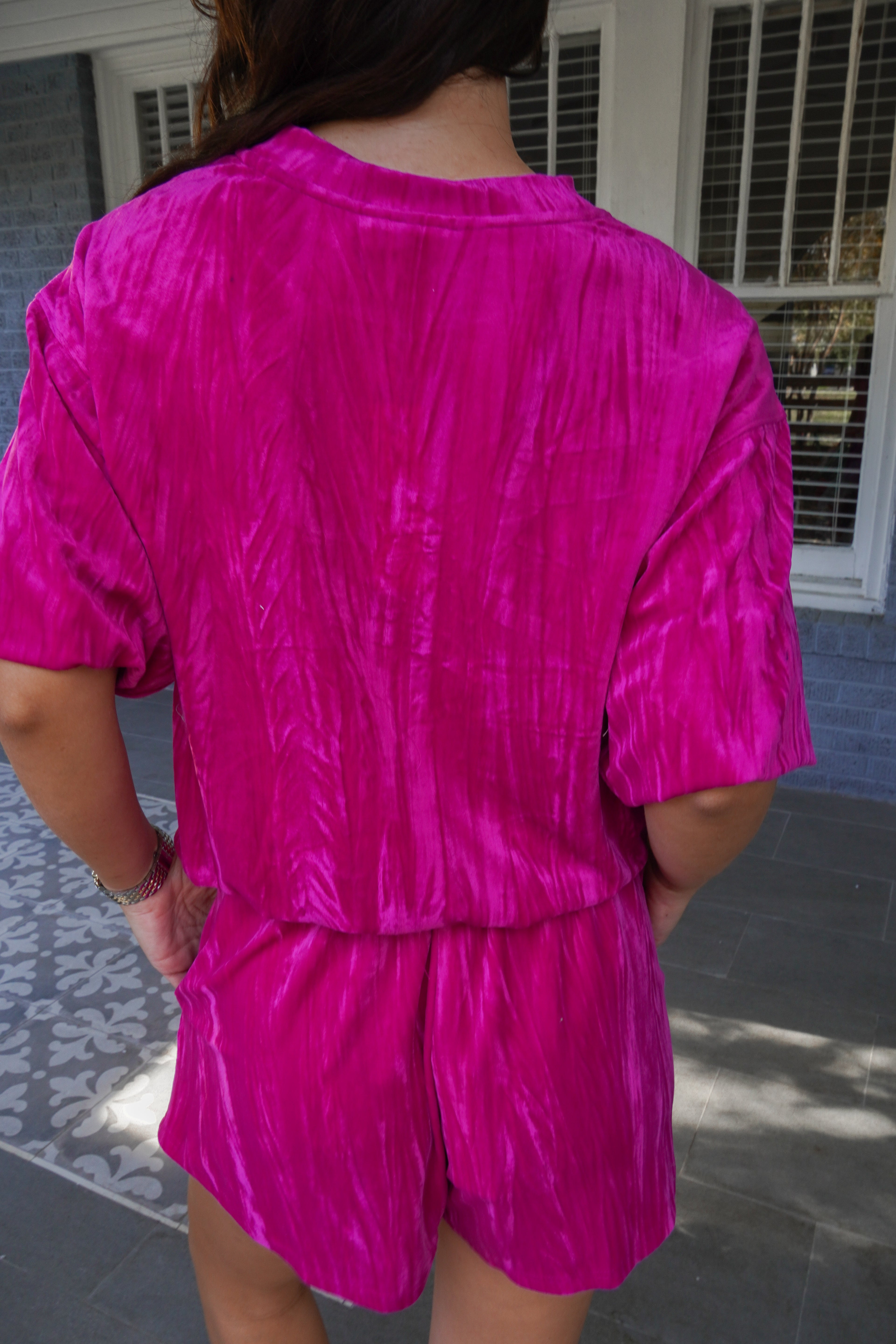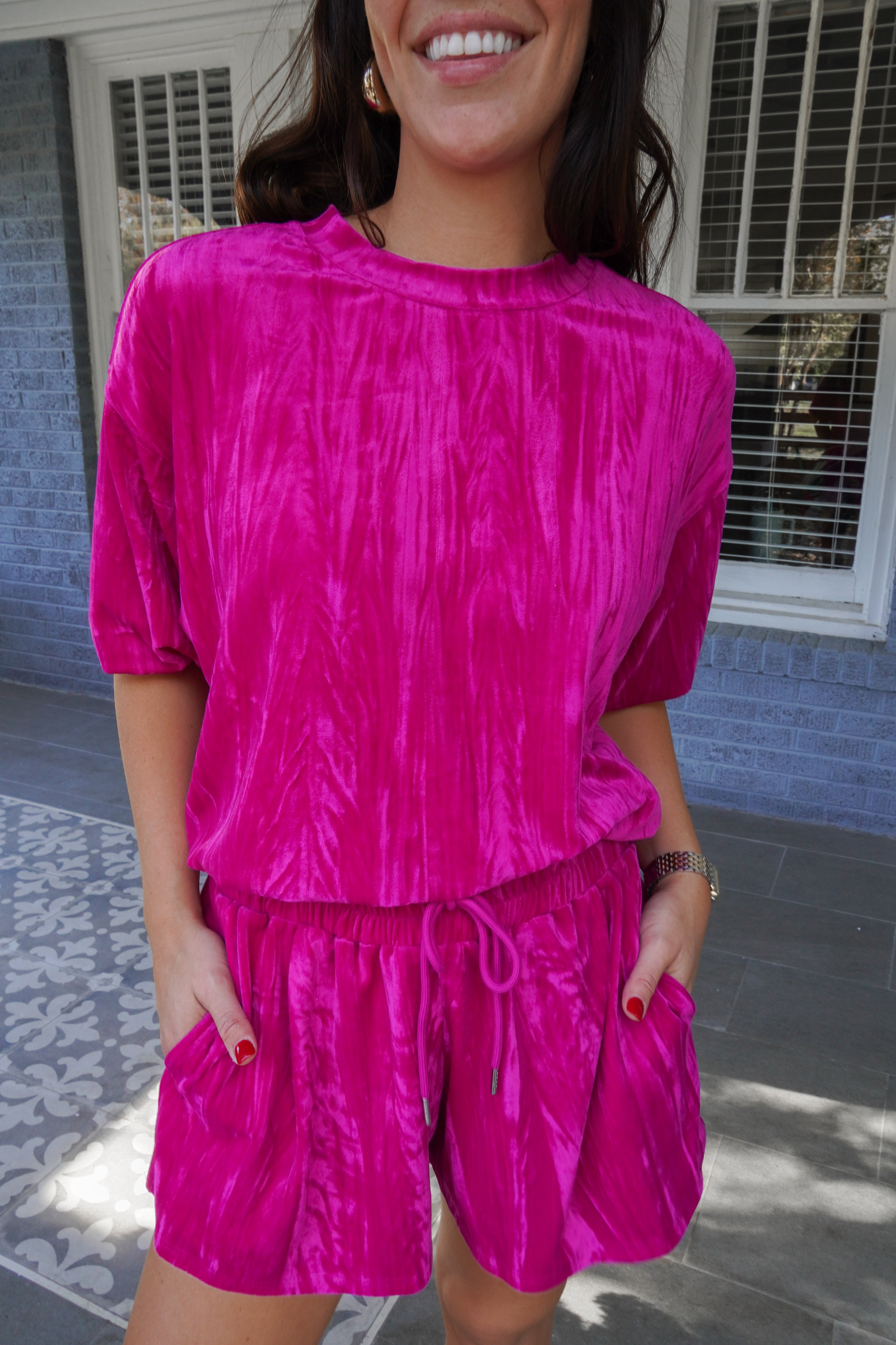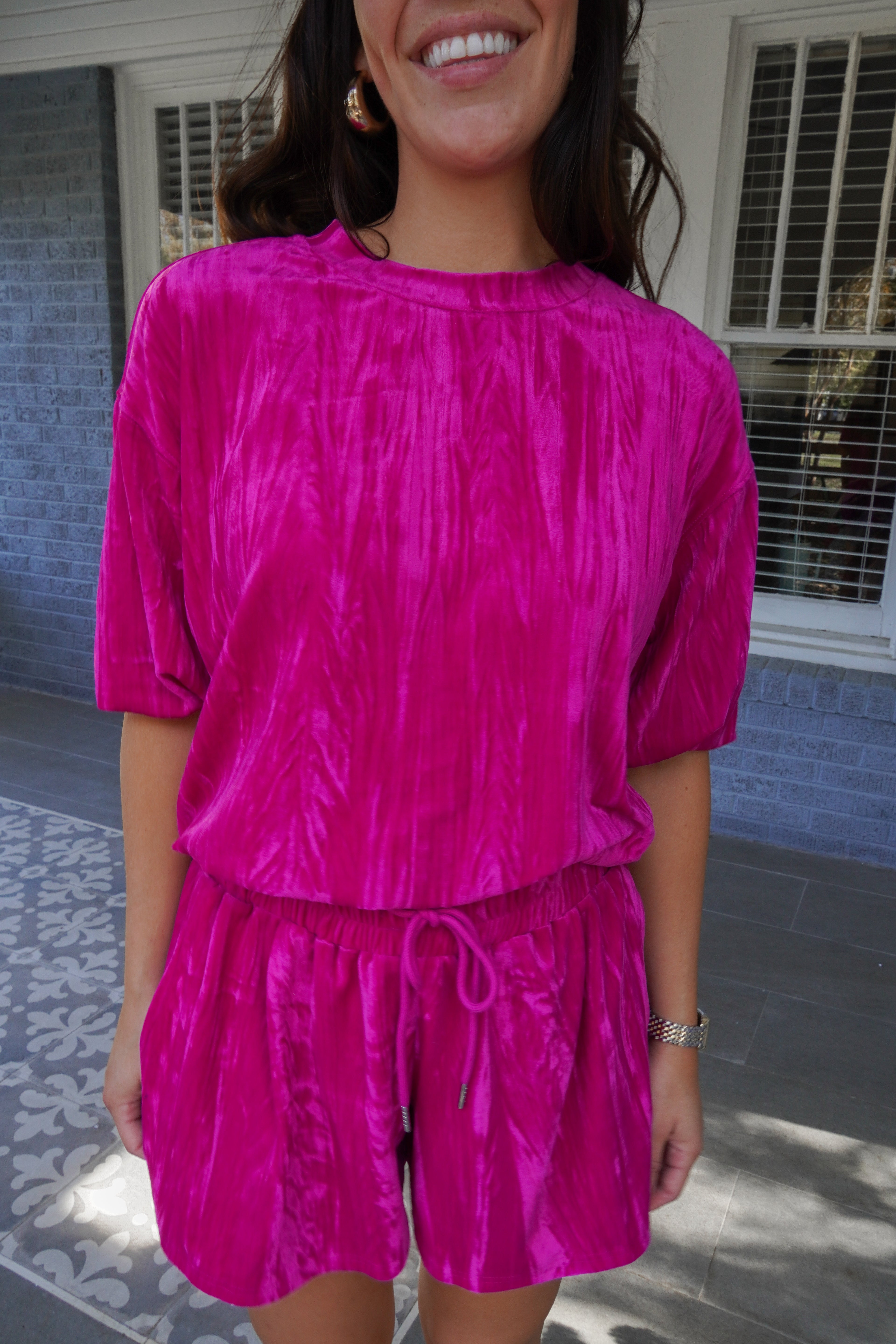 Featuring a fuchsia pink color, this set has the softest and most unique fabric and is so easy to style with sneakers for a day out running errands!