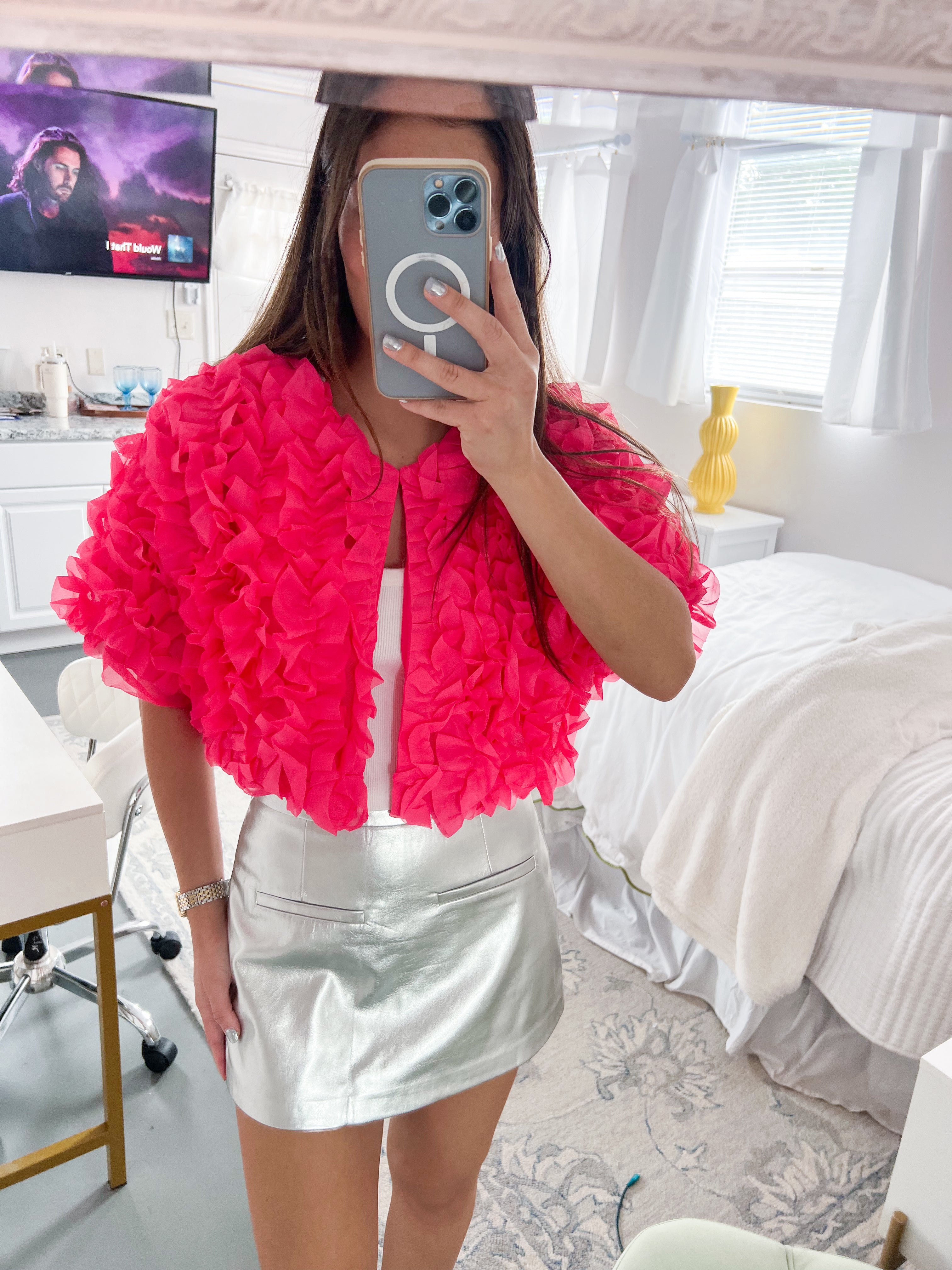 - RUFFLES ON RUFFLES! This short sleeve cardigan overlay is perfect to throw on over your dress for a night out, or dress it down with jeans and a tank top for an everyday look!