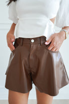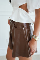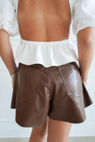 THE FLARED LEATHER SHORTS- BROWN