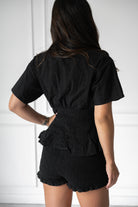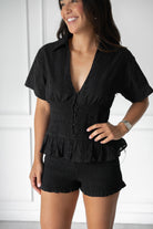 We love all the sweet details on this romper! Featuring eyelet detailing, a smocked bodice, smocked shorts, and a flattering ruffle at the waist– this is the comfiest and most FUN take on our favorite romper!!