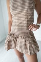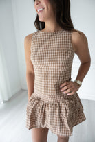 Featuring fun ties along the back, a semi-open back, and a retro plaid print– this mini skirt set is great for gameday or a fun day out with the girls paired best with boots! This is one of those sets that looks amazing together and as separates– perfect for maximizing your gameday looks!
