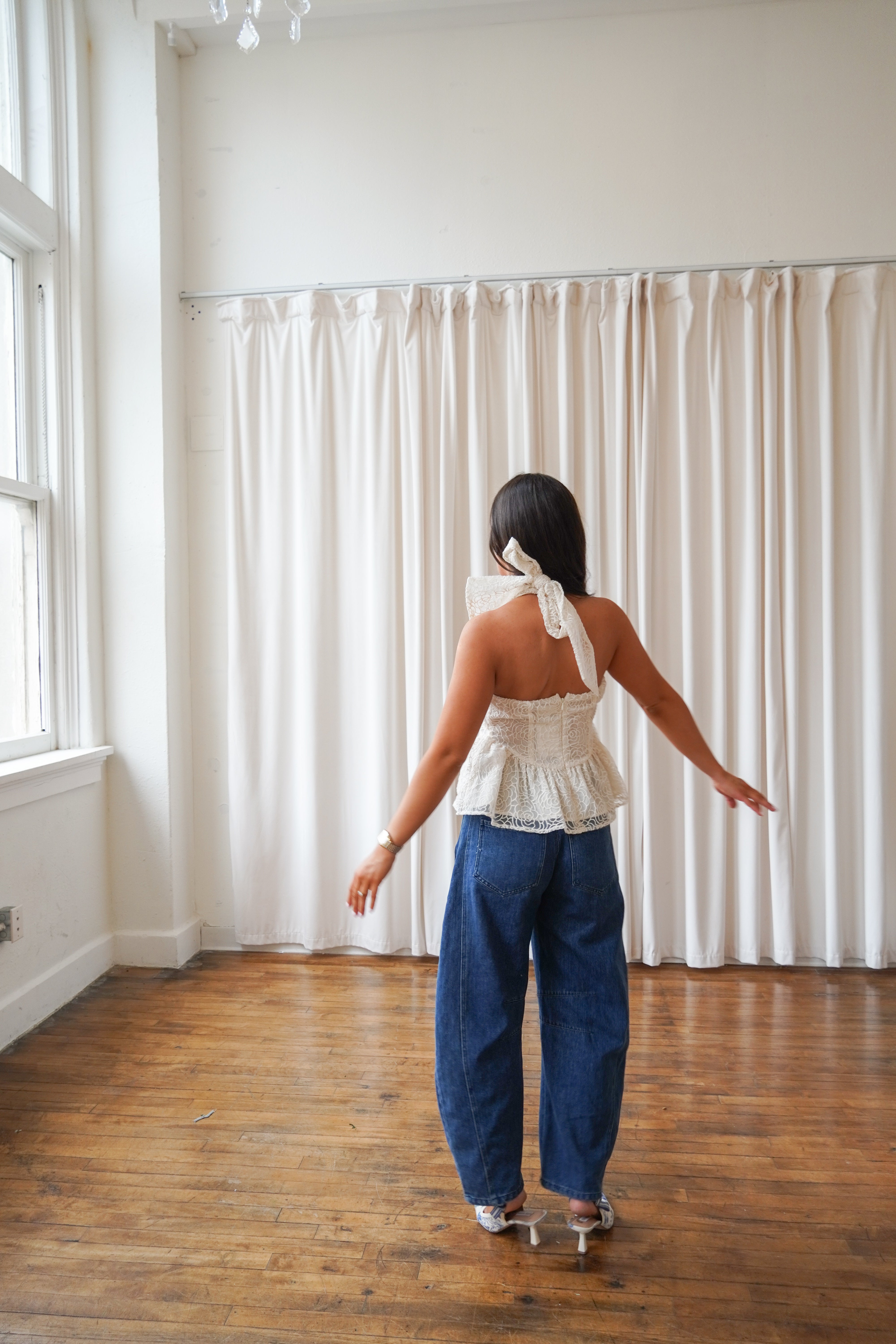 This top pairs beautifully with high-waisted skirts, tailored pants, or even jeans for a balance of sophisticated and playful styling, making it suitable for special occasions, evening events, or chic daytime looks.