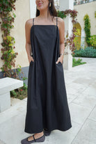 Chic & versatile– this black maxi dress is your new favorite staple. The flowy fit is so flattering & comfy. Style it layered with a sweater for the cooler days, dress it up with heels, or down with flats or sneakers-- the options are endless!