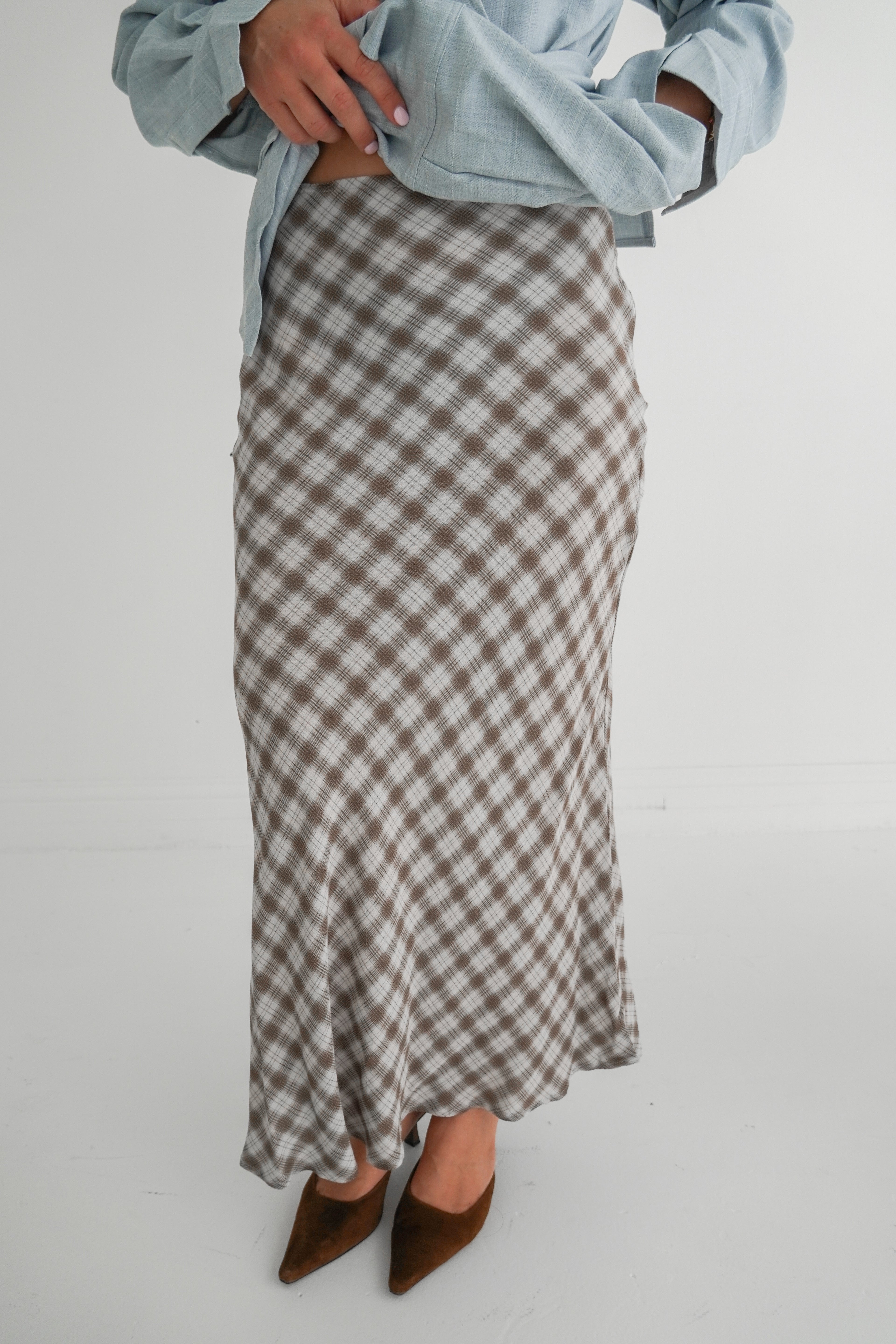 Elevate your wardrobe with this stunning plaid maxi skirt that's chic and playful. Perfect for everything from casual brunch to dressed-up night outs-- this versatile piece pairs effortlessly with your favorite tops.