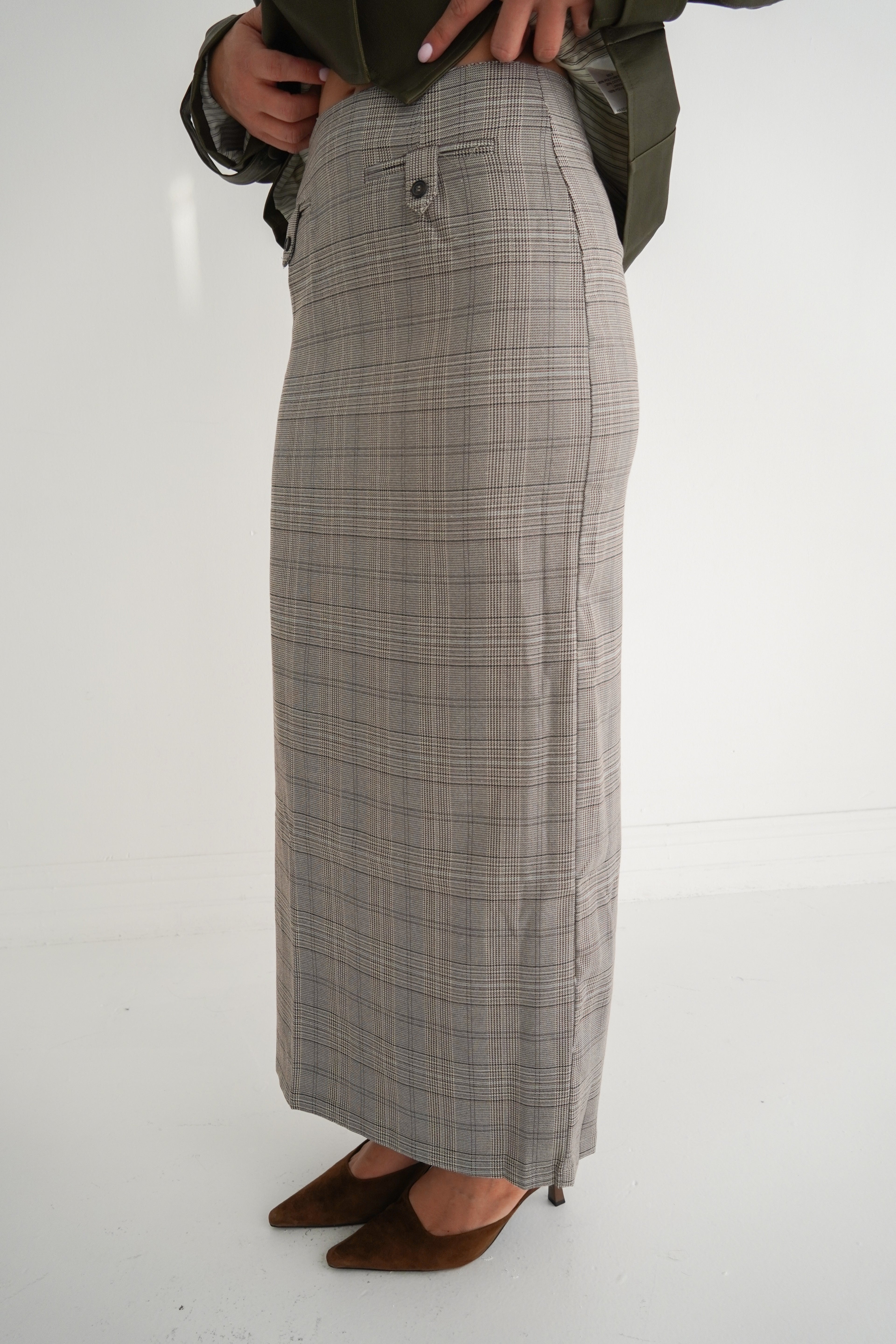 Elevate your work wardrobe with this sharp plaid pencil skirt that means business—but make it fun! Crafted with a tailored silhouette that flatters and moves with you, it features clever front pocket details for both style and practicality. The classic plaid pattern pairs effortlessly with almost everything! Style it with a blouse, cozy sweater, or blazer-- making it your go-to piece for looking polished from Monday through Friday.