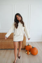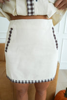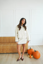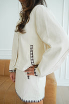 We can't get enough of this adorable cream set!! The brown gingham trim adds such a fun touch! Pair the jacket with so much on it's own this Fall-- endless styling options!