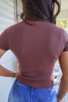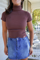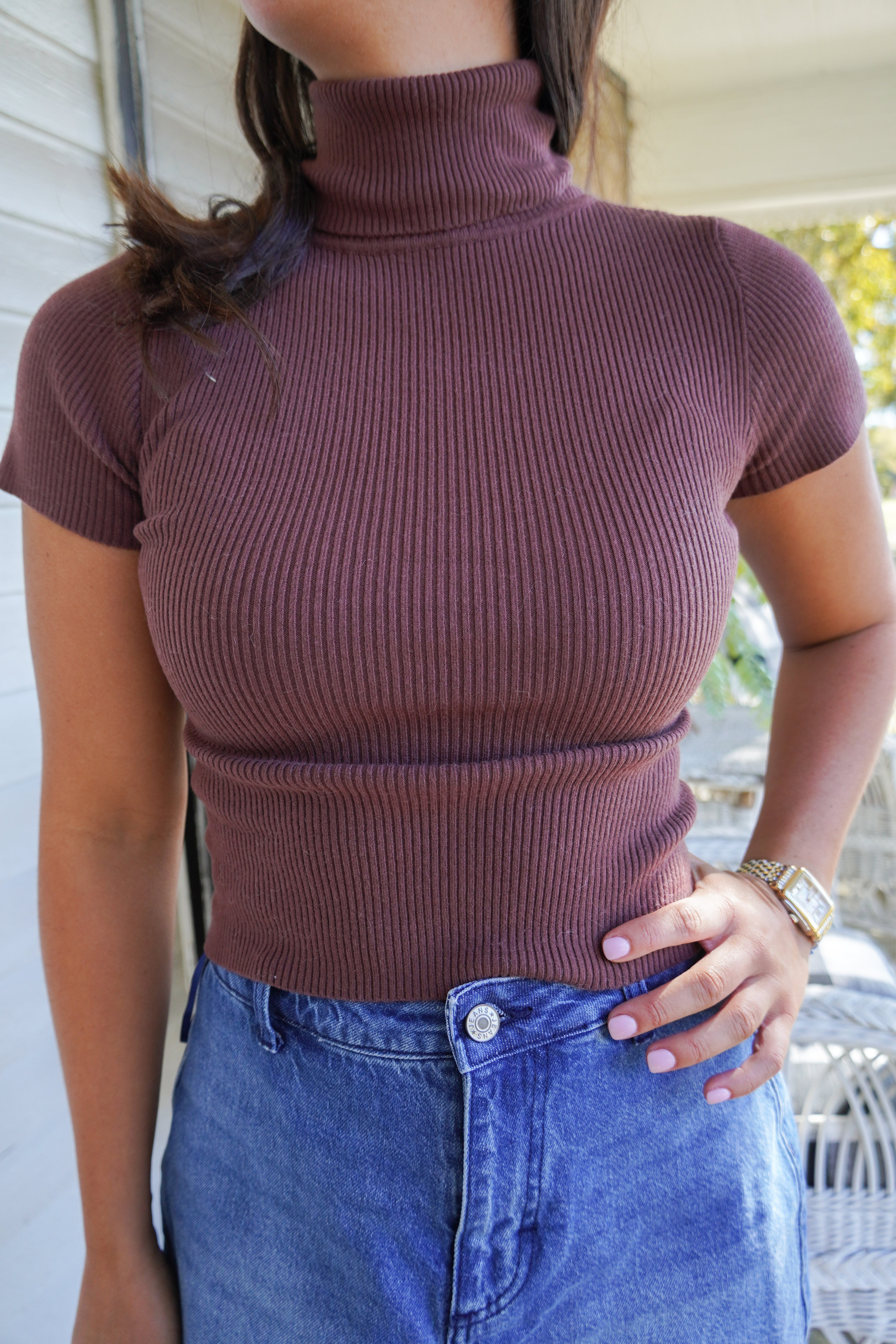 This short sleeve brown ribbed turtleneck is the perfect Fall staple! So easy to layer or wear on its own.