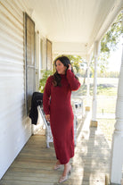 This burgundy sweater dress is the perfect blend of cozy & classy. You can dress this look up or keep is casual depending on the occasion! We love accessorizing this midi dress with statement jewelry and a fun coat!