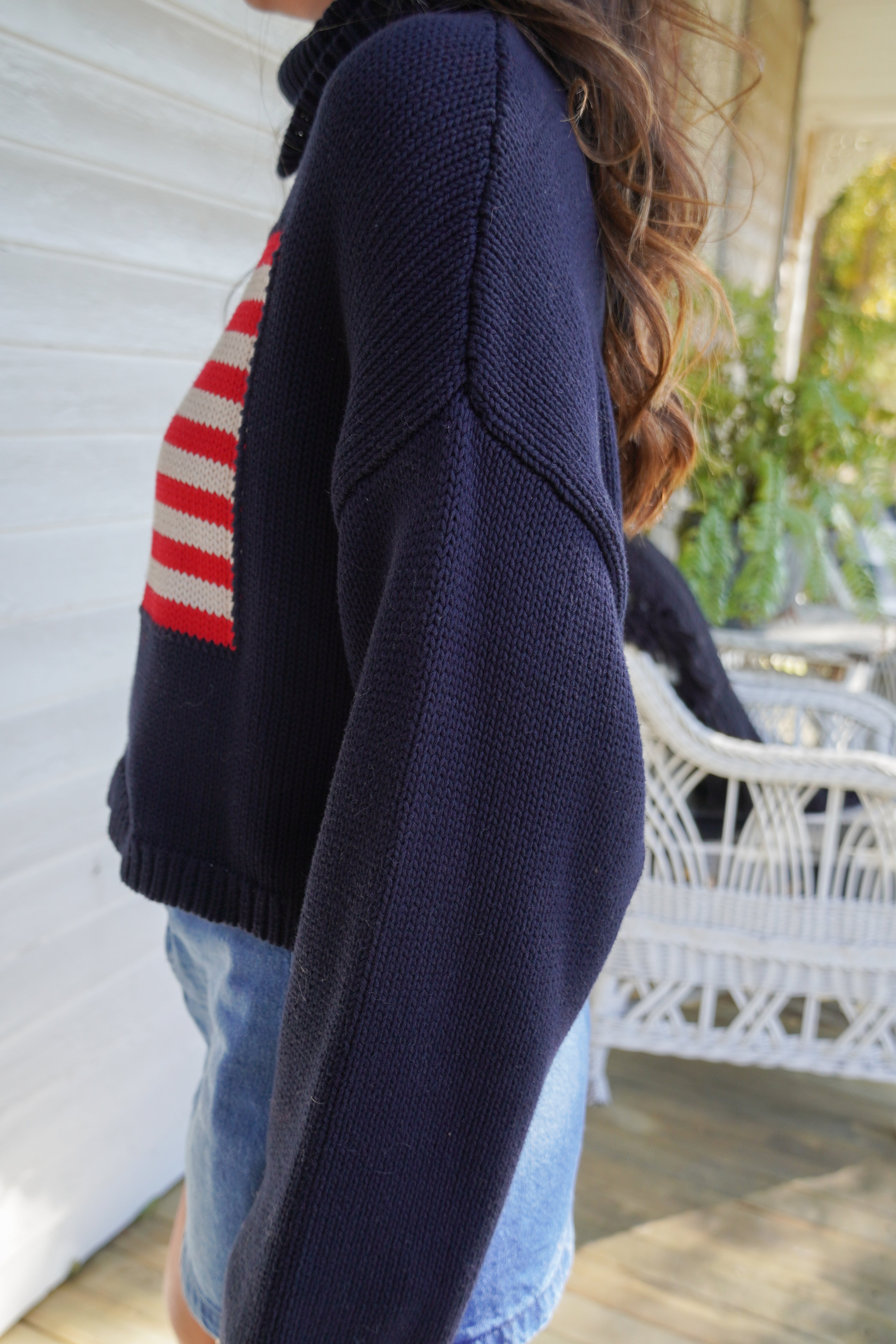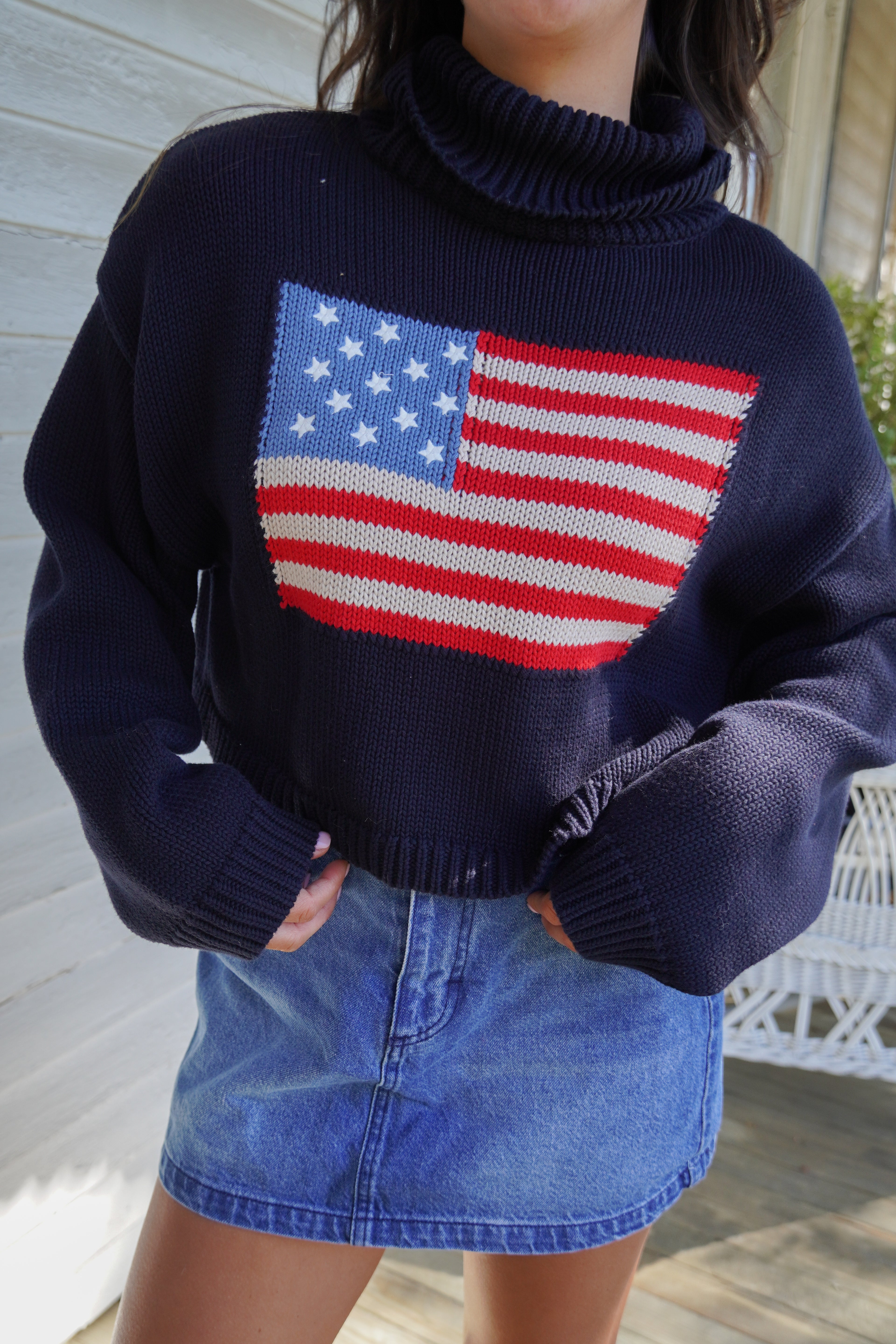 We love the vintage Americana vibes of this sweater! Featuring a slightly cropped fit– this turtleneck is perfect for celebrating any classic American holiday.