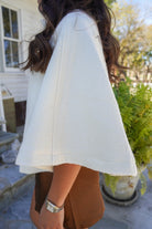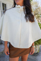 Stay warm while looking so classy + sophisticated in this ivory cape! Featuring hidden snap buttons, a wool blend & a collar that can be flipped up or down– this is the perfect layer to elevate your outfit.