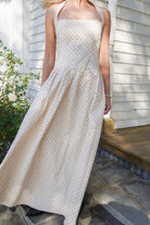 Perfect for a fancy friendsgiving or the winter bride-to-be - we love this polka dot maxi dress! Featuring a flattering halterneck & a smocked back for some slight stretch.