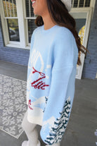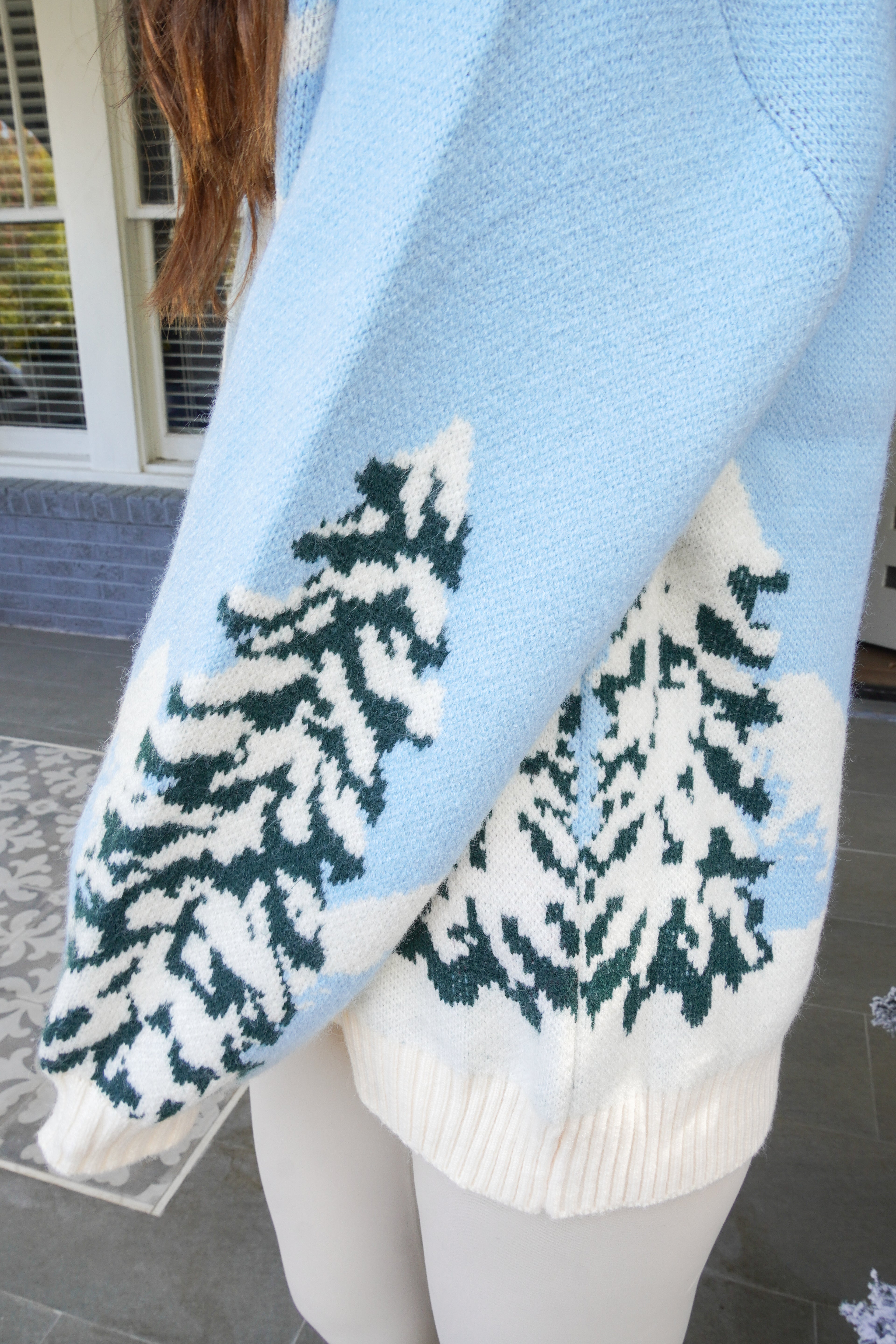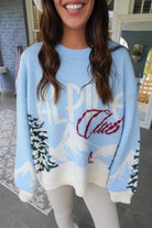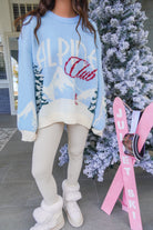 Featuring a light blue, snow trees and mountains along the sweater— inspired by the Alps, this sweater has "Alpine Club" written along the front-- so cool girl and so easy to throw on this Winter season!