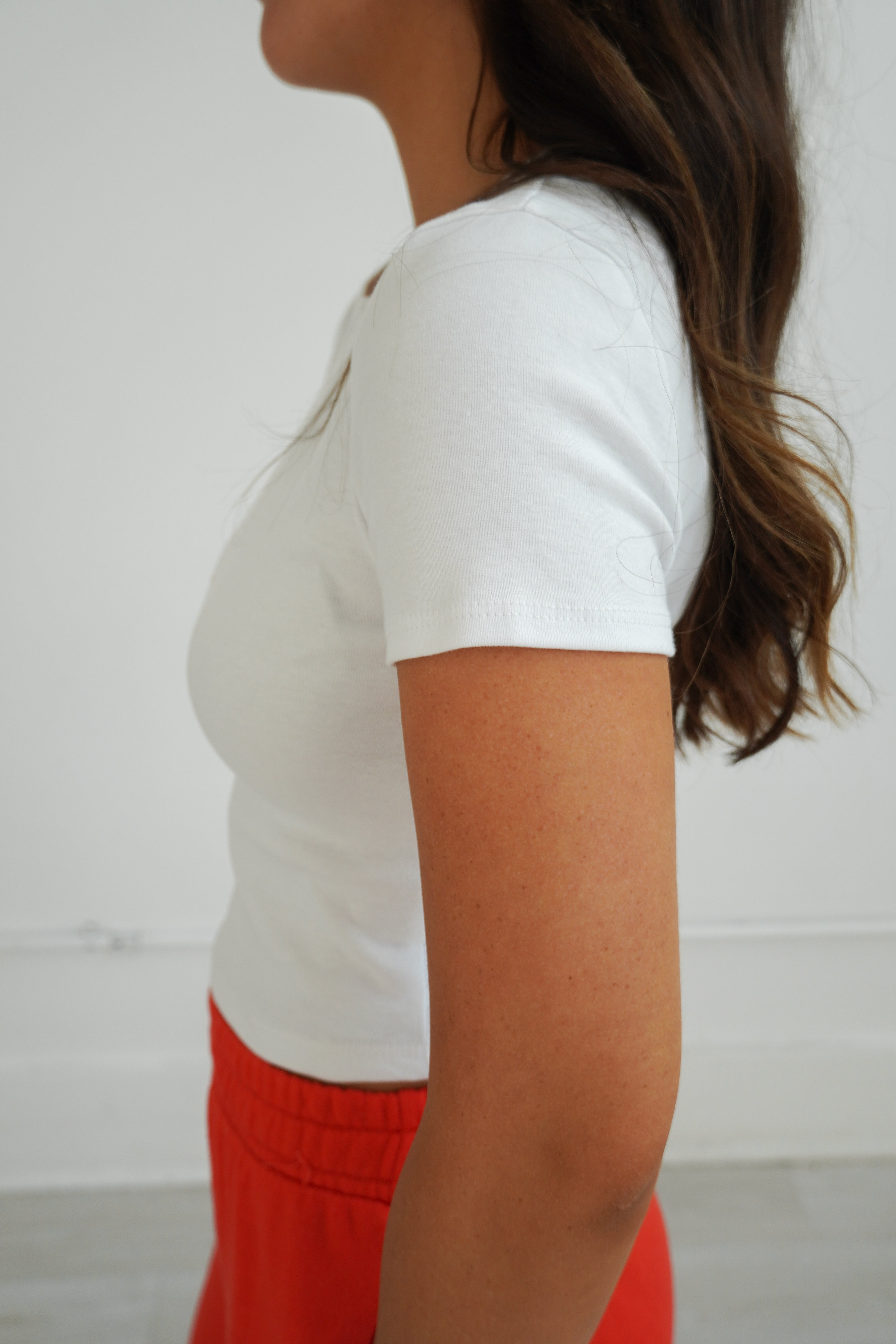 Featuring the perfect baby tee with a slightly cropped fit, this tee is the perfect basic for everyday wear-- style it so many ways!