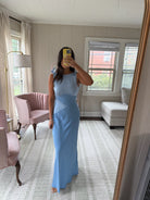 Open draped back.