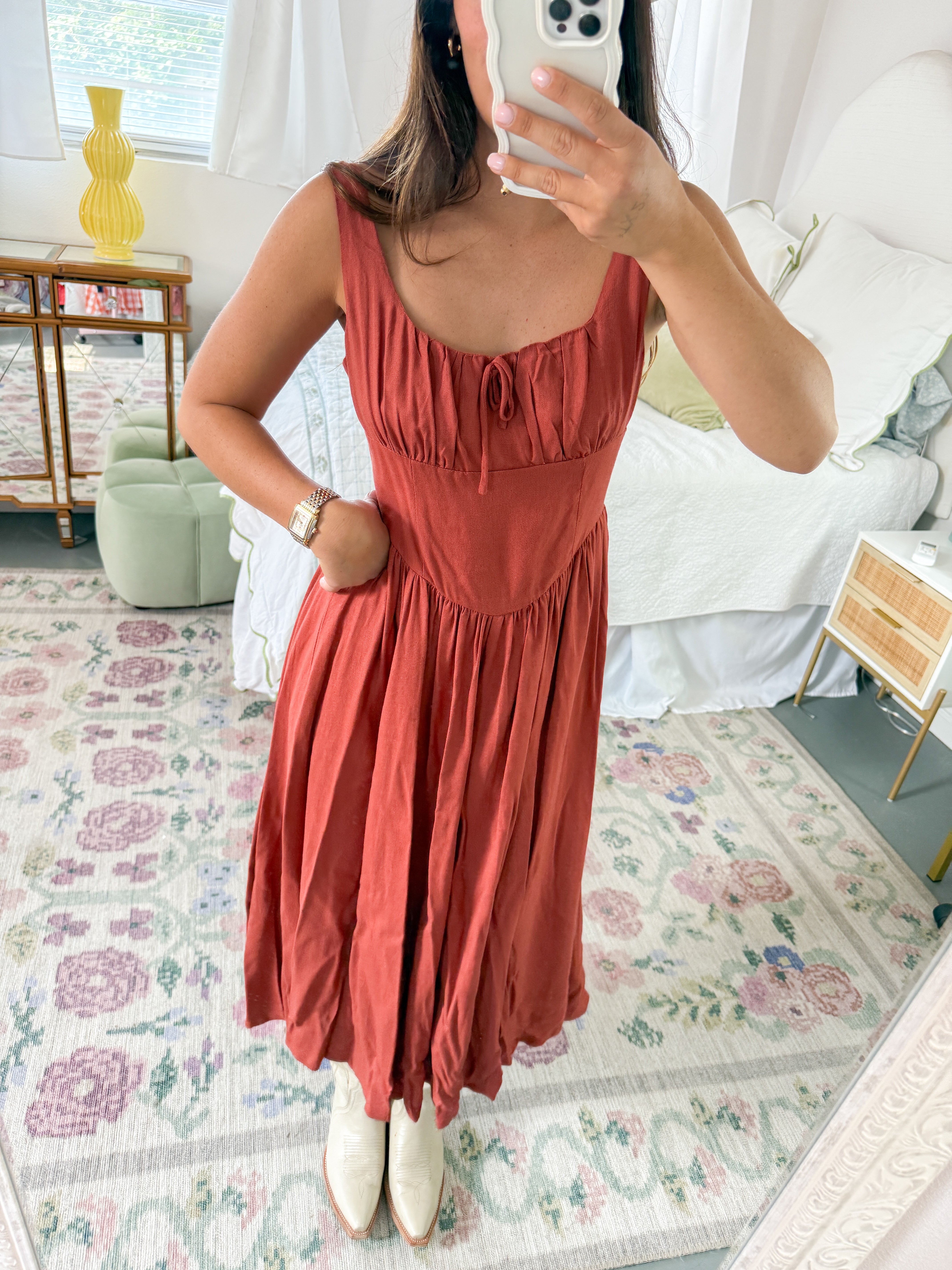 BURNT ORANGE MIDI DRESS- SMALL