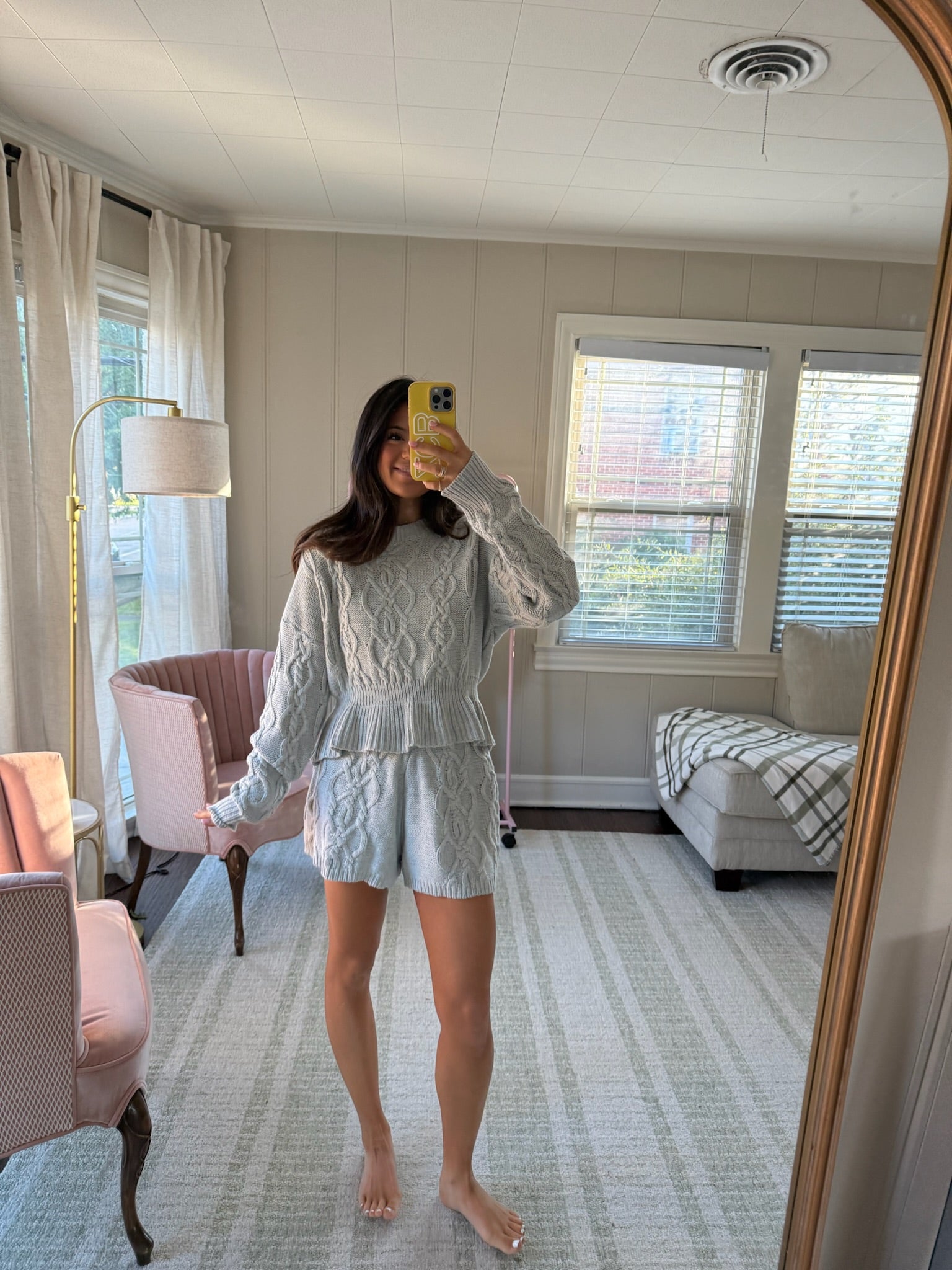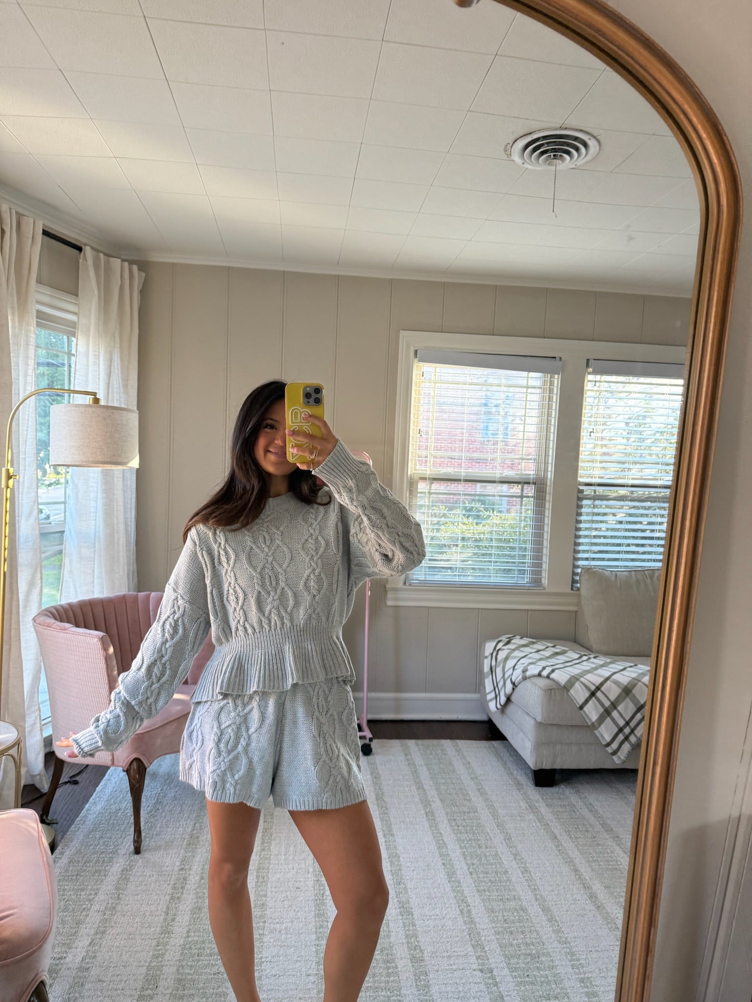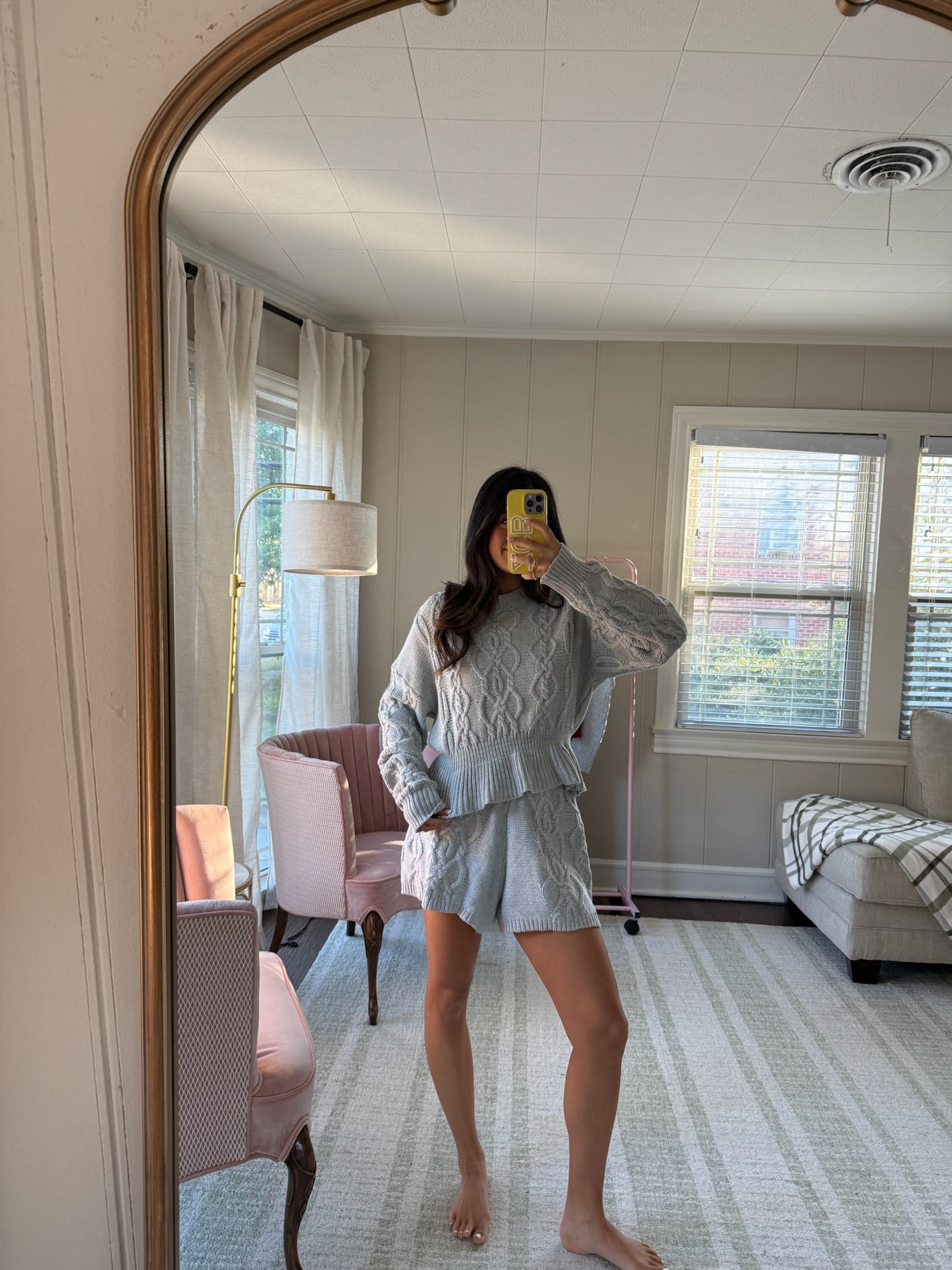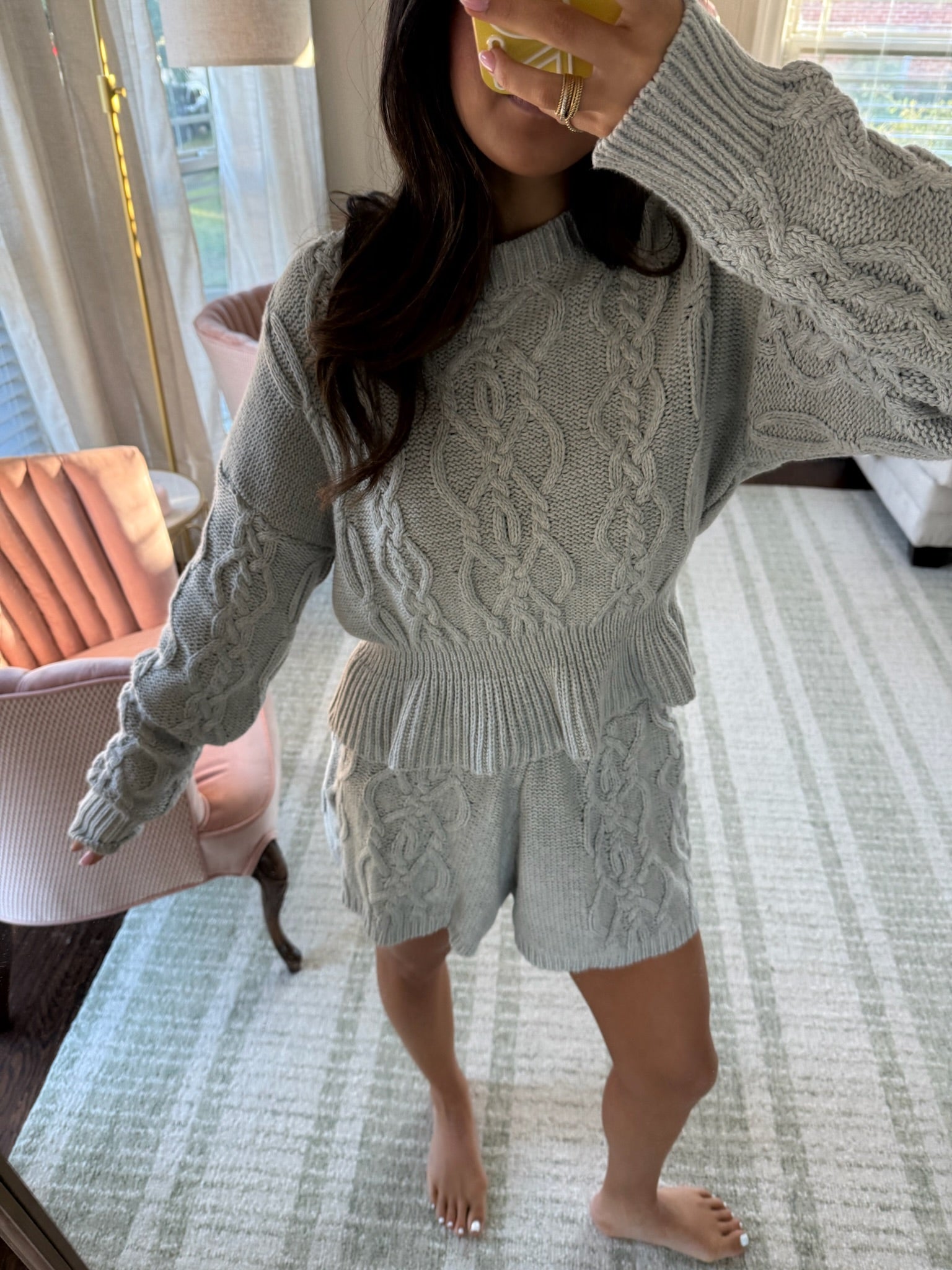 GRAY CABLE KNIT SWEATER SET- LARGE