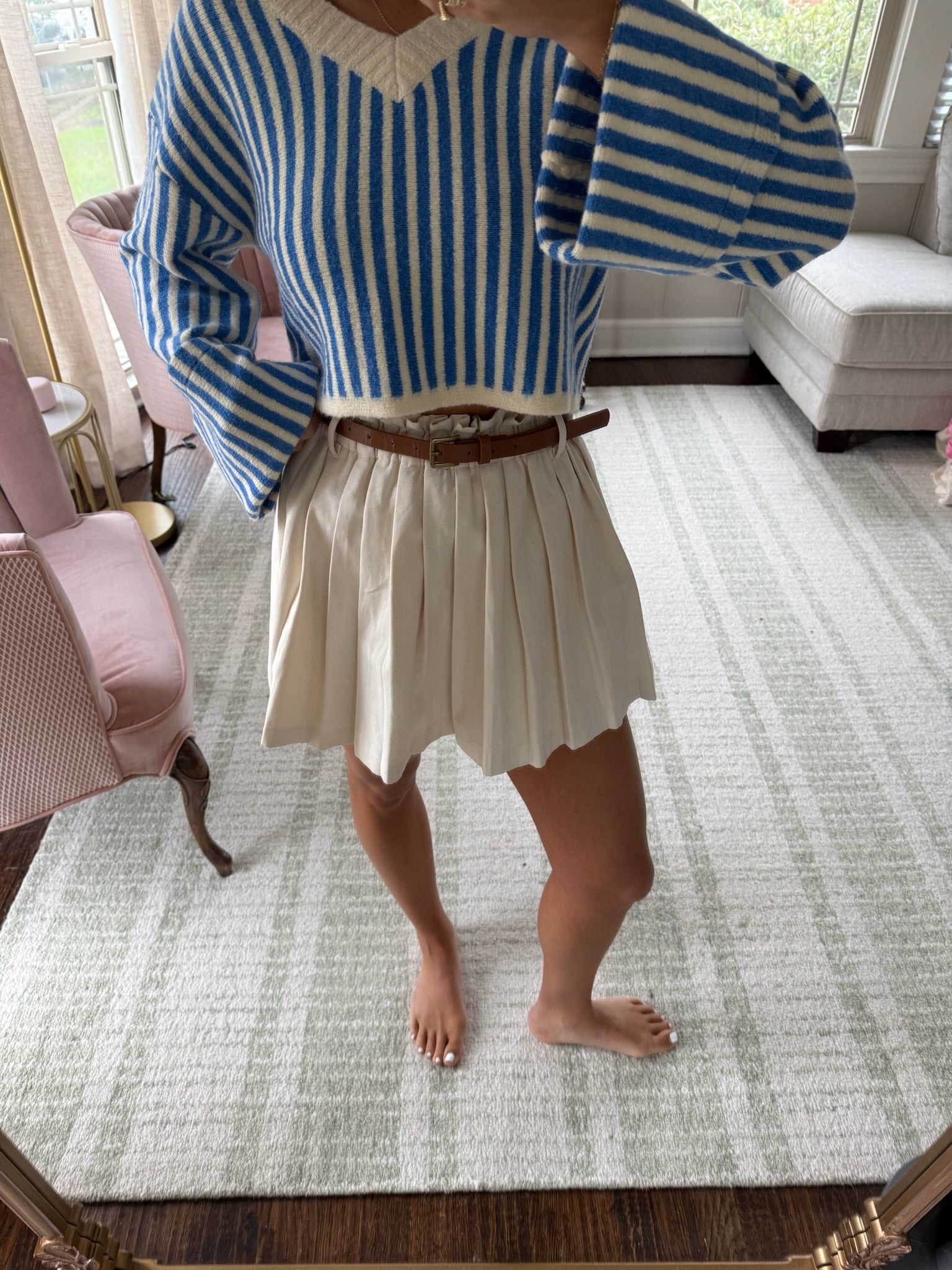 KHAKI PLEATED SKIRT WITH BELT- SMALL